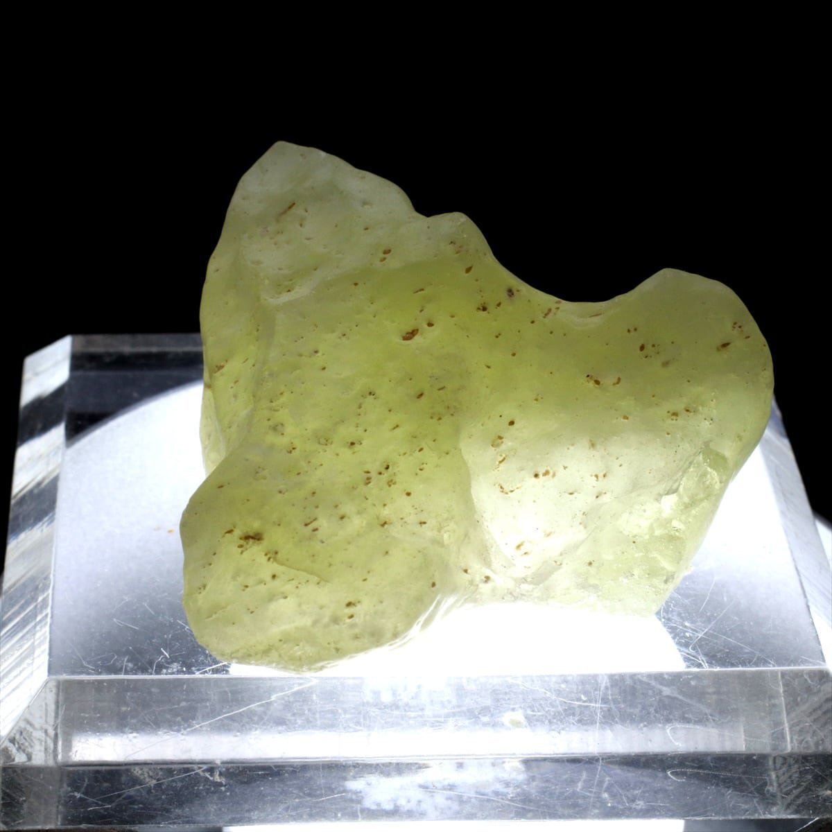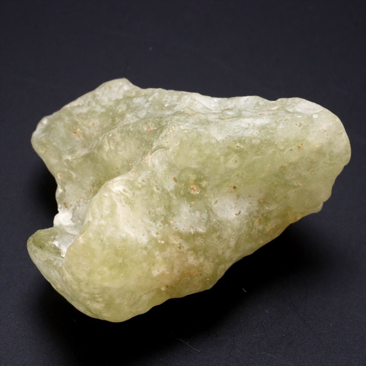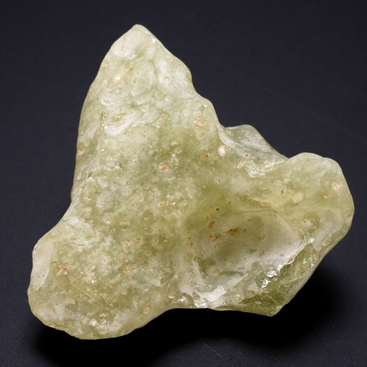 海外ではリビアンデザートガラスまたはグレートサンドシーガラスとも呼ばれており、約2900万年前に隕石が衝突した衝撃で出来たガラス質の結晶だとされ、表面は砂漠の砂で磨かれ角が滑らかになっているものがほとんどです。モルダバイトよりも古い歴史を持ち古代エジプトの人々はリビアングラスに特別な力があると信じてきました。ツタンカーメン王の墓からはリビアングラスを使った両刃の手斧やアンティークガラスで作られた石炭船が出土し、この絢爛豪華な船の中央にはリビアングラスで作られたスカラベが装飾されており、古代エジプト人達により大切に扱われてきたことを感じさせます。