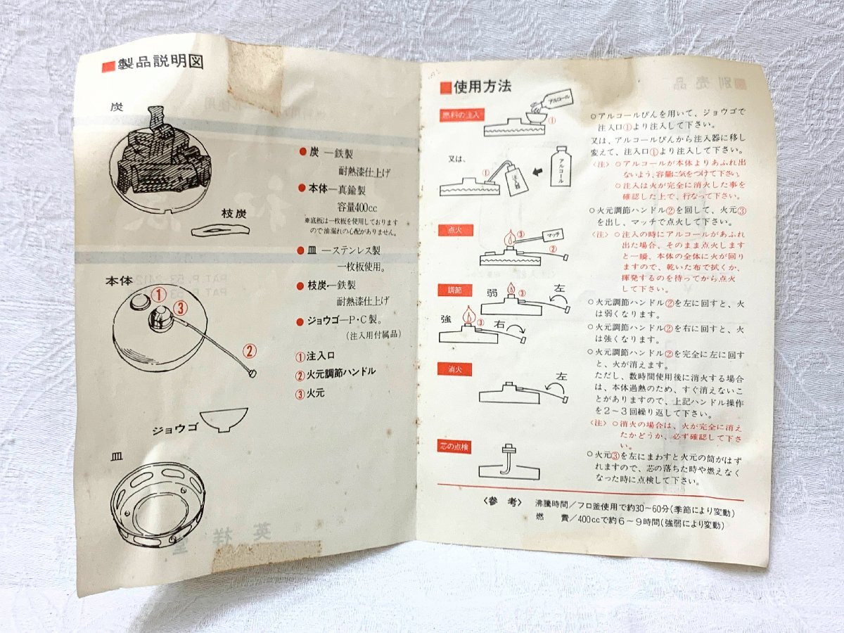 17259/英祥堂 大和炭 燃料用アルコール式 炭型風炉用五徳 紙箱 茶道具 説明書付