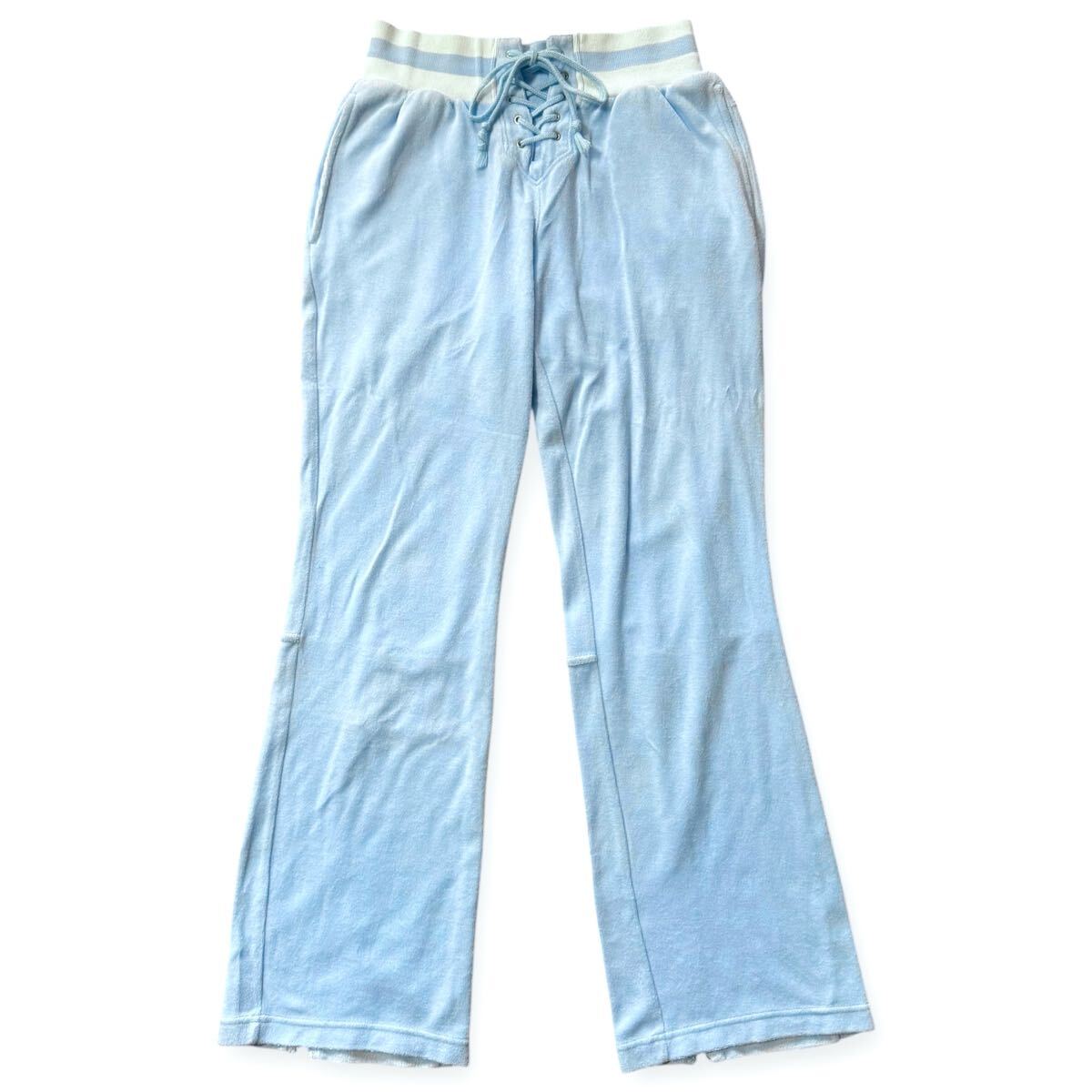 adidas 00s y2k パイル地 レースアップ フレアパンツ ブルー Mサイズ