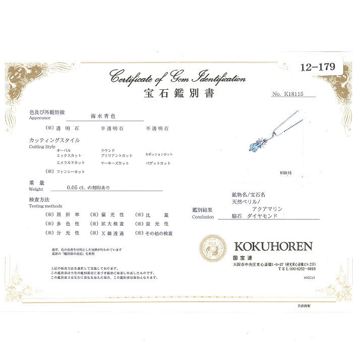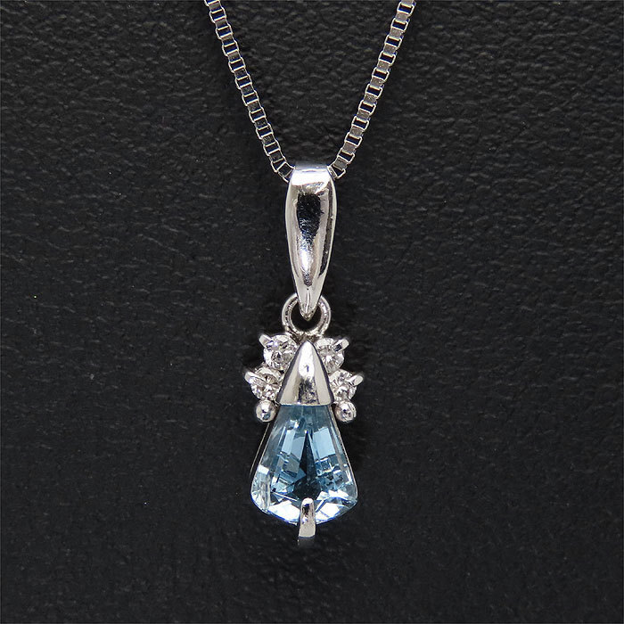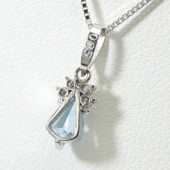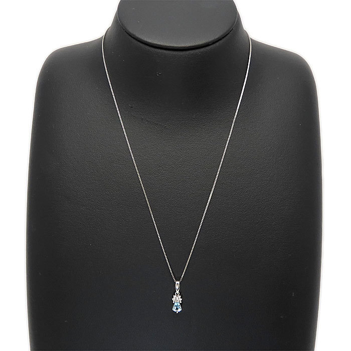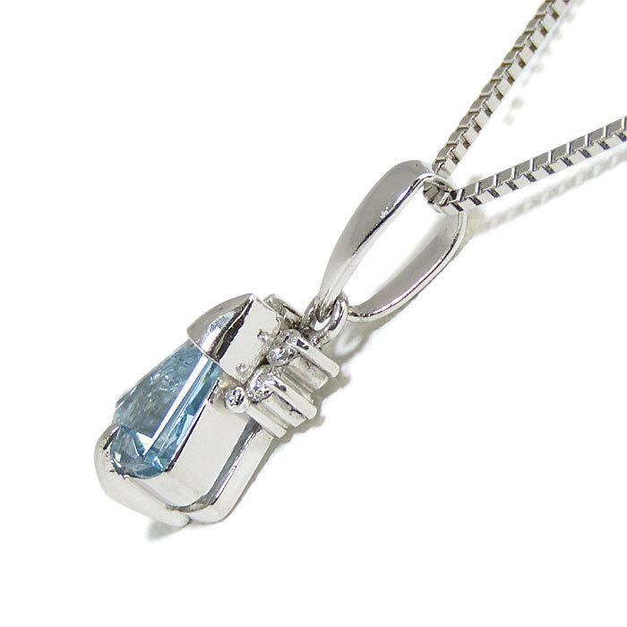 素材 | トップ:Pt900 アクアマリン(石目なし) D0.05ct チェーン:Pt850 | ||