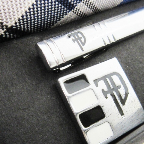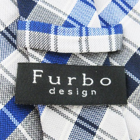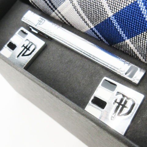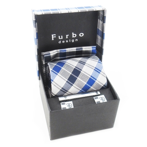 未使用品 フルボデザイン Furbo design タイセット 4点セット ネクタイ タイバー タイピン カフス チーフ チェック 青 ブルー /CK19
