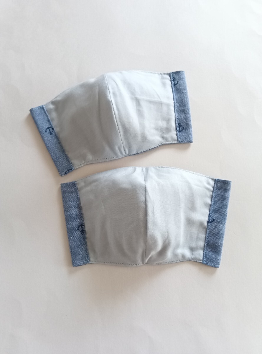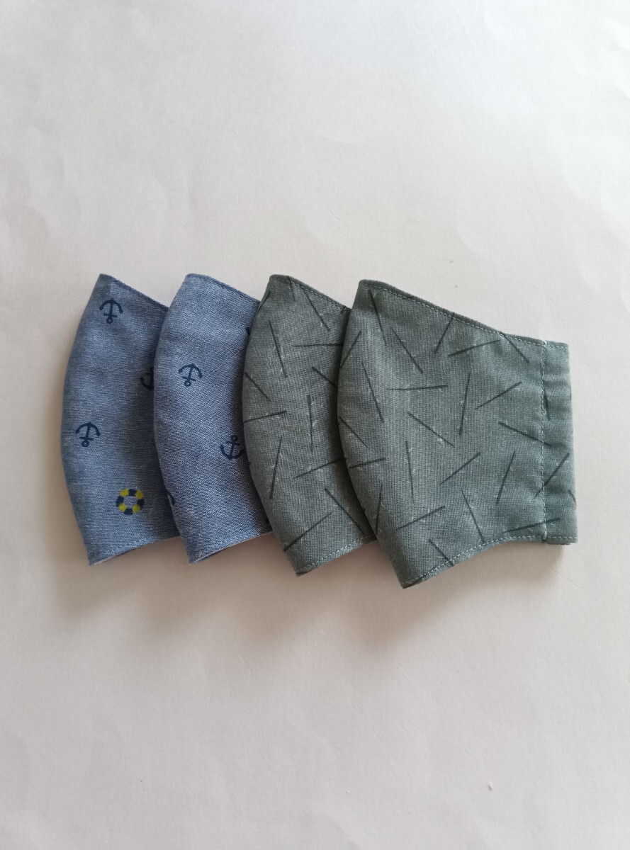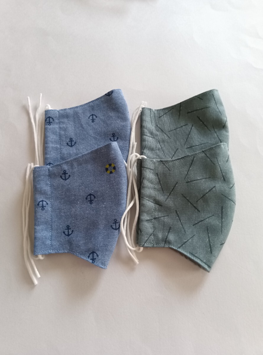 小学校低学年用立体マスク6枚入り(ブルーグリーン2枚・イカリ柄4枚)ハンドメイド★送料無料★