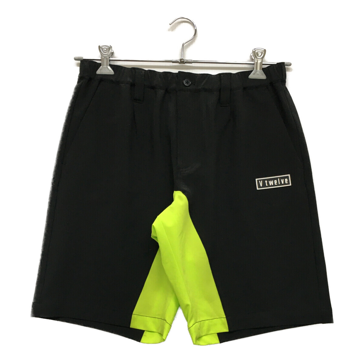 coco 未使用品【値下げ】 ヴィ・トゥエルヴ V12 メンズ ハーフパンツ M 黒×蛍光黄色 ウエストゴム レターパックプラス発送可 90357