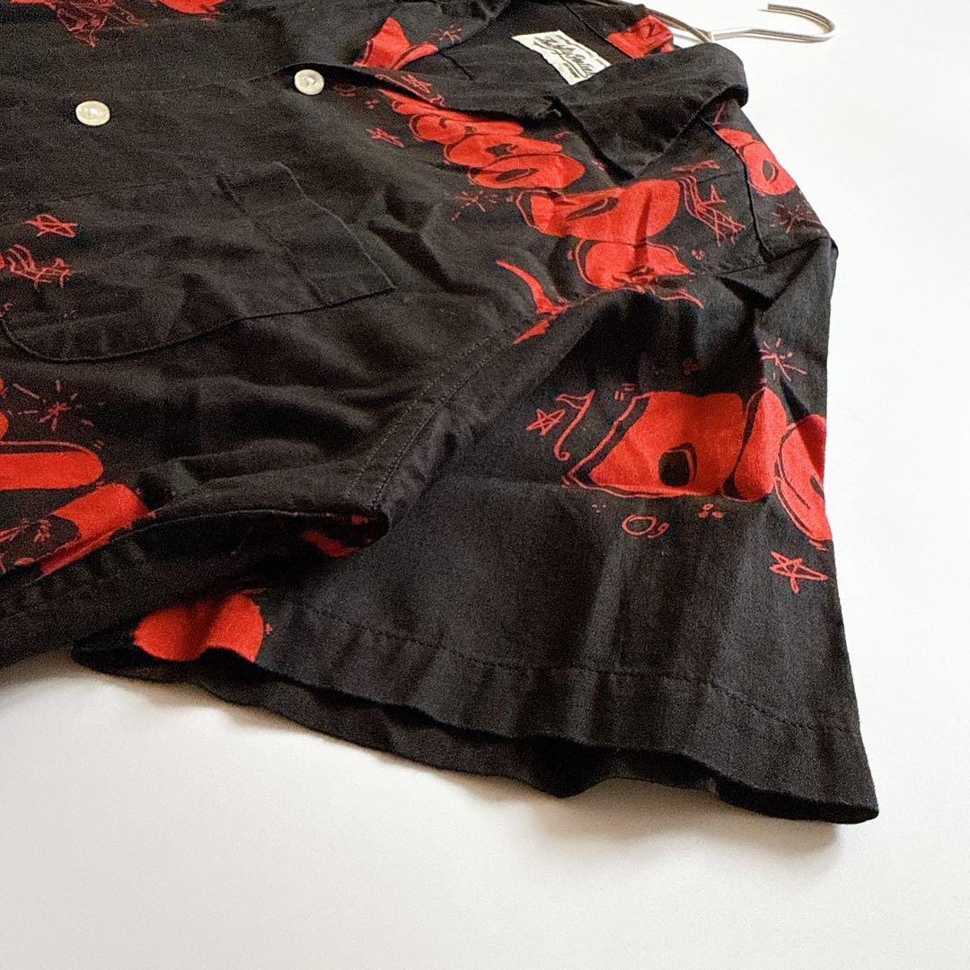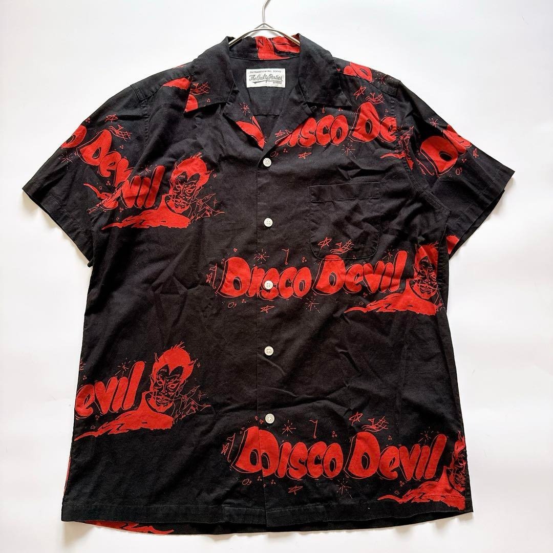 WACKO MARIA ワコマリア The Guilty Parties シャツ 半袖 アロハシャツ オープンカラーシャツ 開襟シャツ Disco Devil ディスコデビル 総柄 ブラック 赤 ロゴグラフィック 日本製 メンズ レディース ユニセックス M