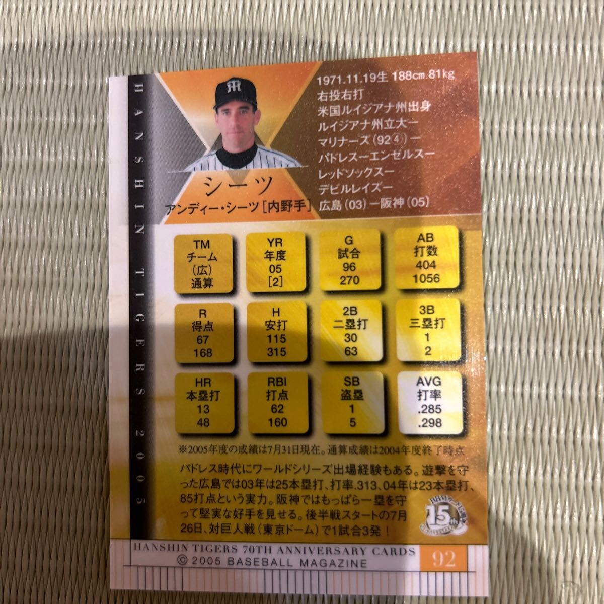 2005BBM 92 シーツ 阪神タイガース