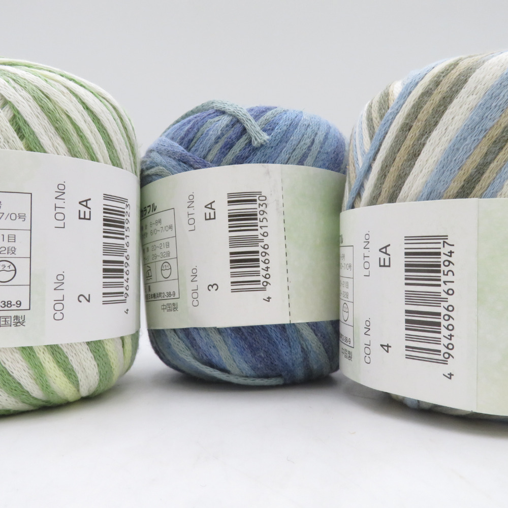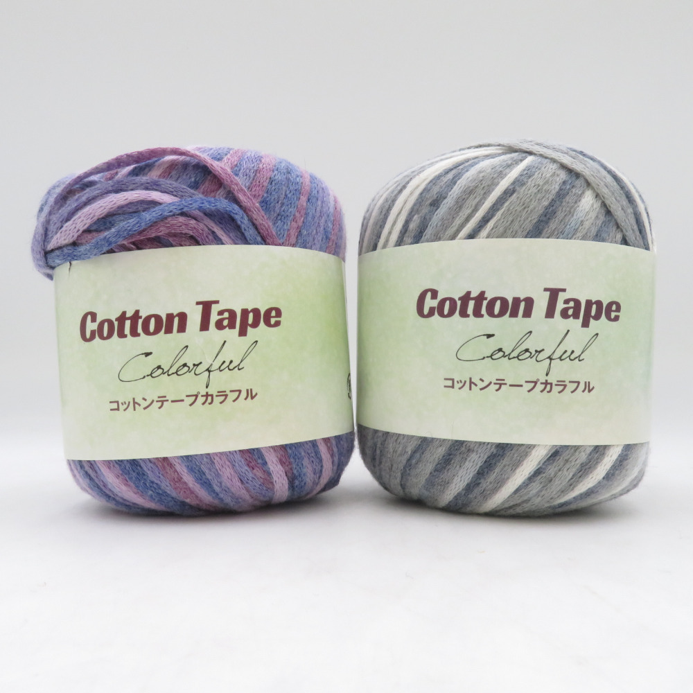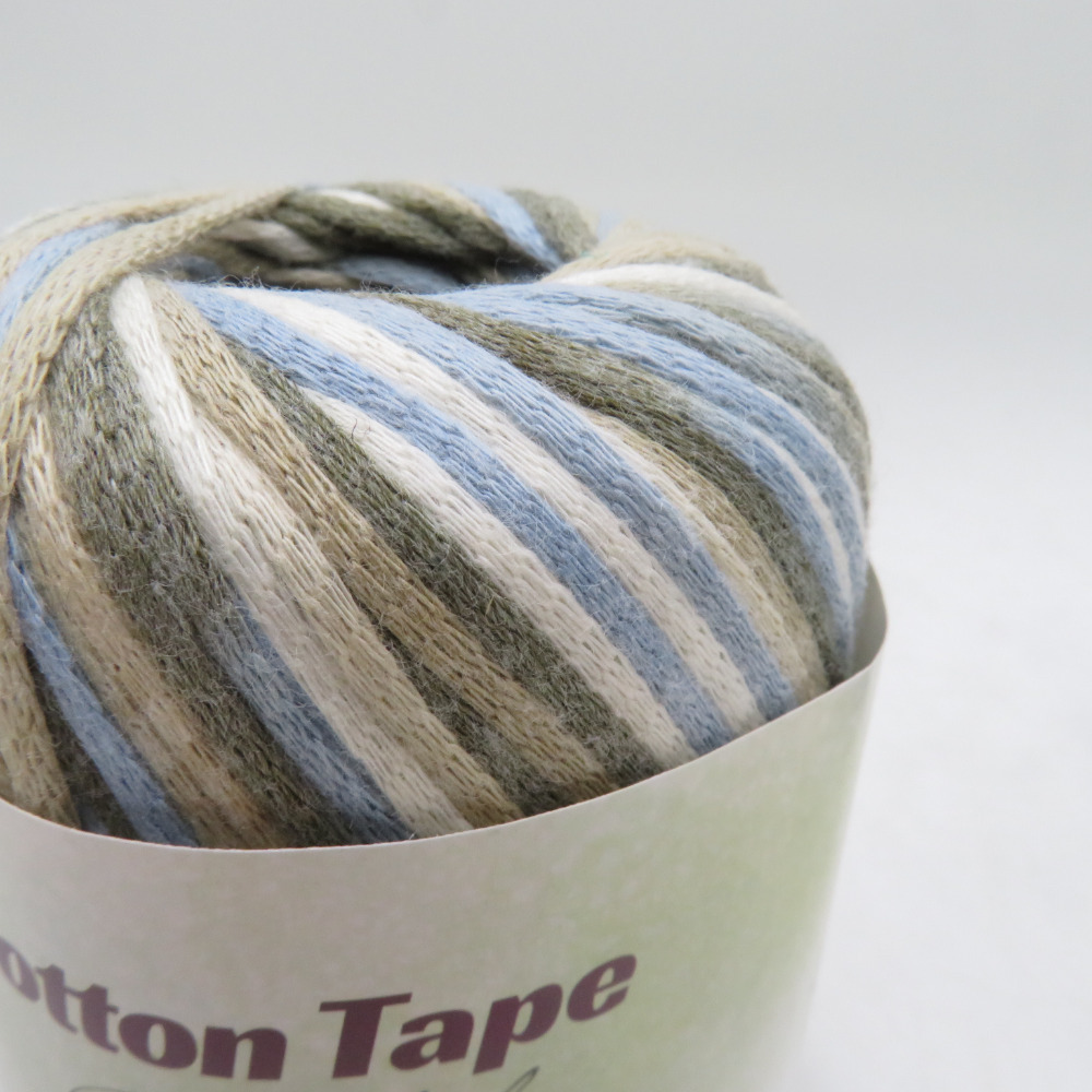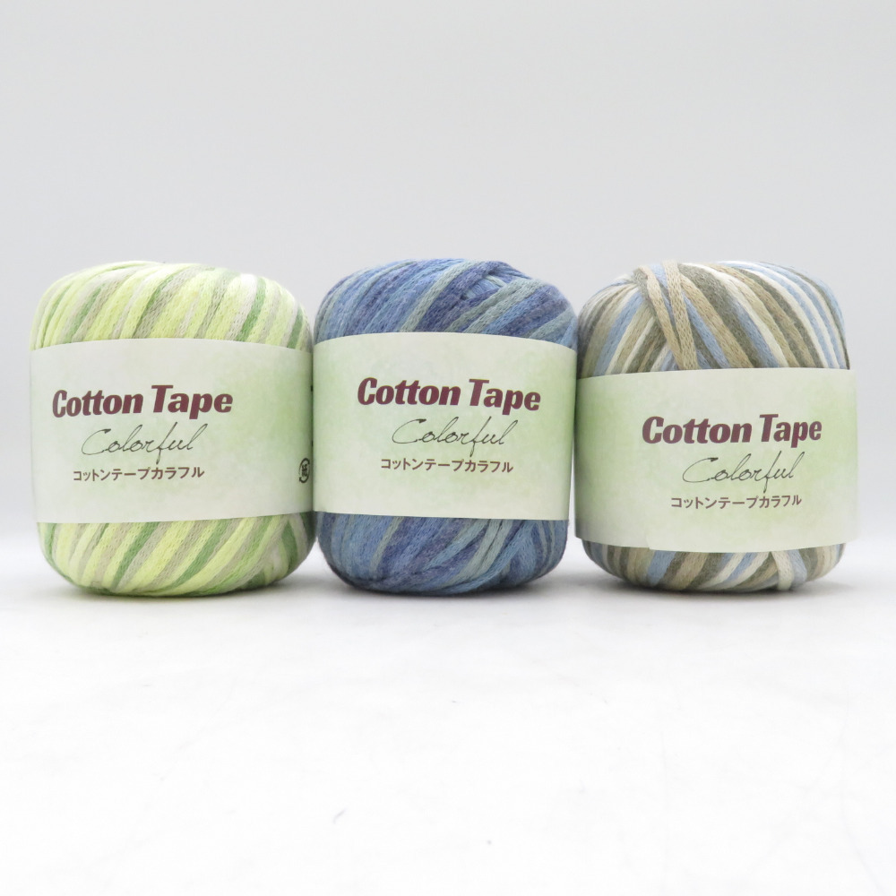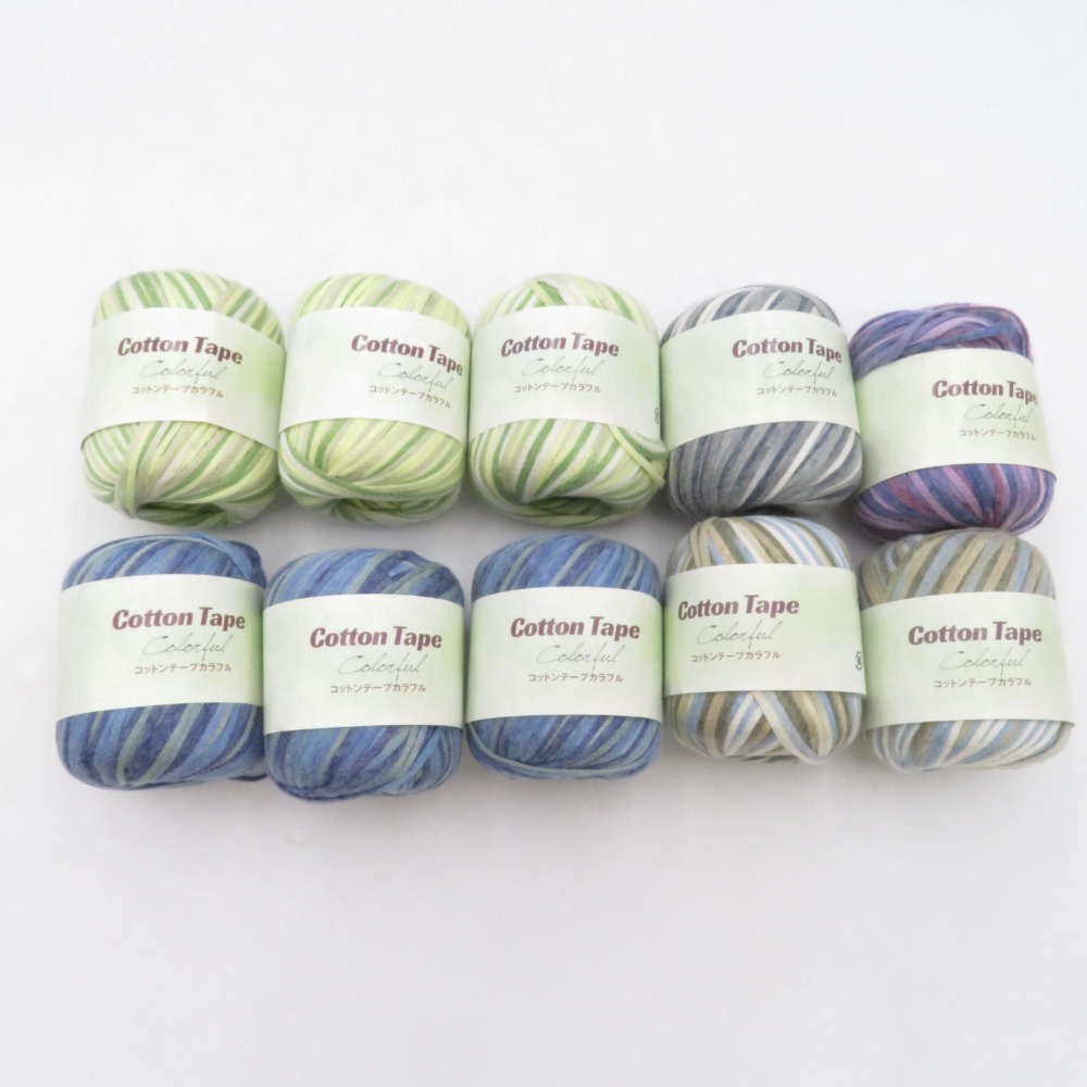 | 毛糸 コットンテープカラフル 10玉セット 1玉25g巻 約67m 元廣 綿 アクリル 春夏毛糸 テープヤーン 青色 緑色 未使用品 |