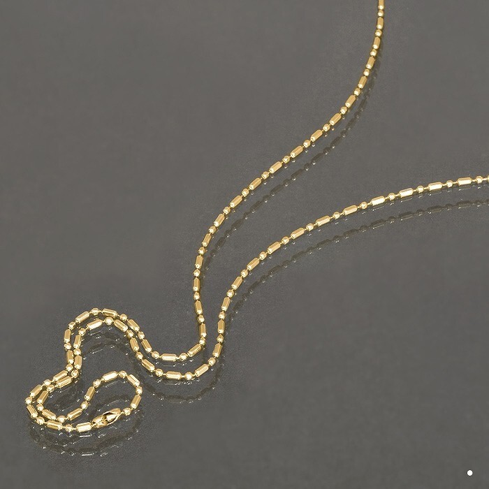 変形カットボールチェーンは俵型のバーとボールが交互に連なった変形ボールチェーンにカットを入れたネックレスです。棒と球のパーツが連なるので(BAR×ROUND)、BRチェーンと商品名に付いております。こちらのチェーンの留め具はボールを筒状の留め具にはめるコネクタータイプなので、丈夫で壊れにくい、ペンダントに通し易い、留め具がデザインの邪魔にならない、ニッパーなどで切って長さの調整が出来る等、優れた特徴を持つ大変使い勝手の良いネックレスです。 ※こちらのチェーンは絡まりにくく万が一絡まってしまったとしても解きやすいデザインです。 ※イオンプレーティング(IPメッキ)とは、金属イオンと不活性ガスを反応させた化合物を製品に蒸着させるコーティングで、ガスの比率でカラーを調整します。従来の鍍金加工に比べて表面耐久性、密着性、工程の安全性が飛躍的に向上しております。 |