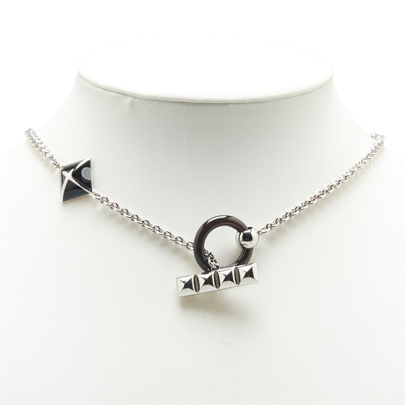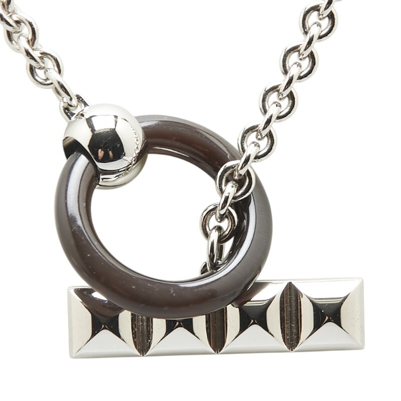 エルメス メドールXO コリエドシアン ネックレス シルバー ブラック メタル バッファローホーン レディース HERMES 【中古】