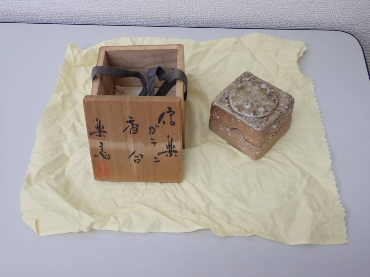 | 茶道具-38; 高橋楽斎・楽斉 信楽 ガラン(伽藍) 香合 高さ;約4.6×6.0×5.6cm 共箱 ★ | ||