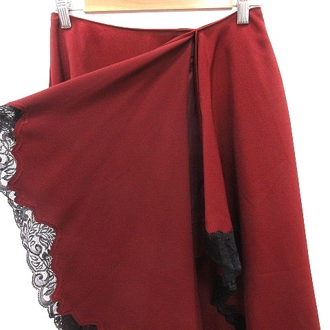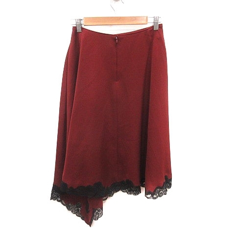 未使用品 ジルスチュアート JILL STUART フレアスカート ひざ丈 アシンメトリー レース 0 赤茶 レッドブラウン 黒 ブラック レディース