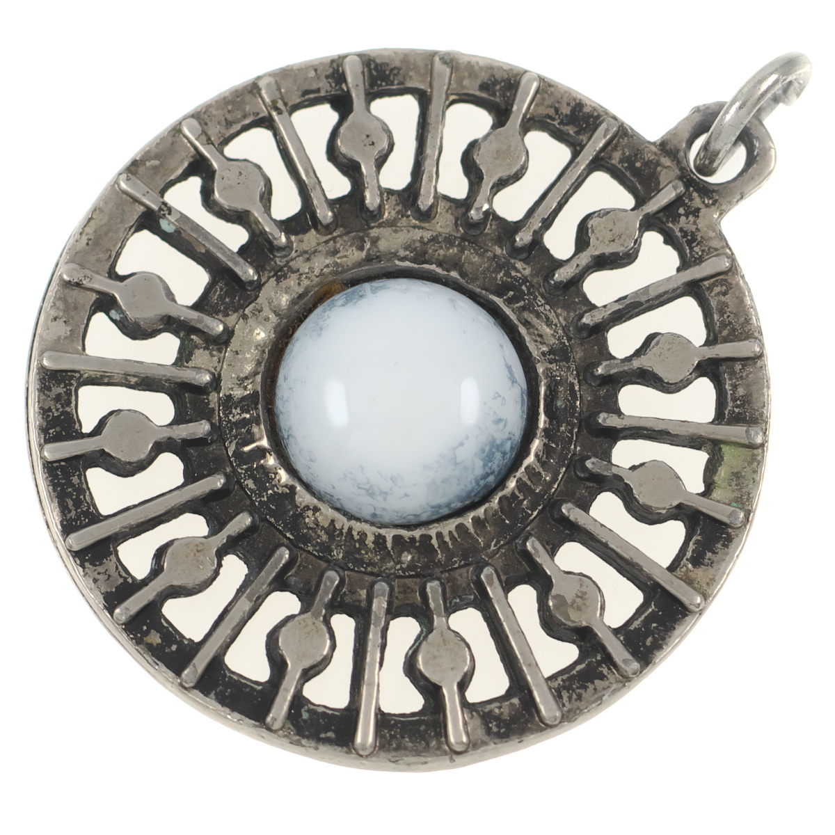 UK3875◆ ラウンド マーブルストーン 色石 ケルト 英国 ヴィンテージ ペンダントトップ ネックレスに