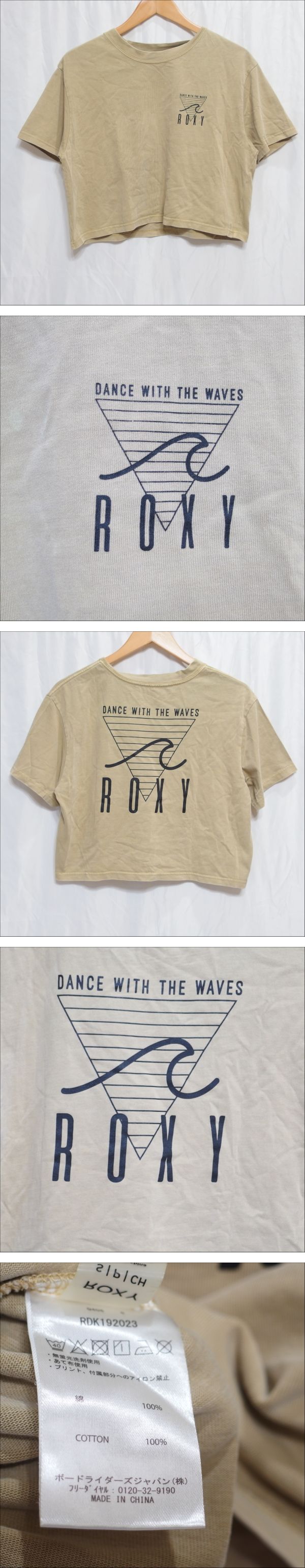 ROXY◆ロキシー ショート丈 半袖 ロゴ入り Tシャツ(ベージュ)サイズS・ダンス・ヨガ◆USED D | |||
