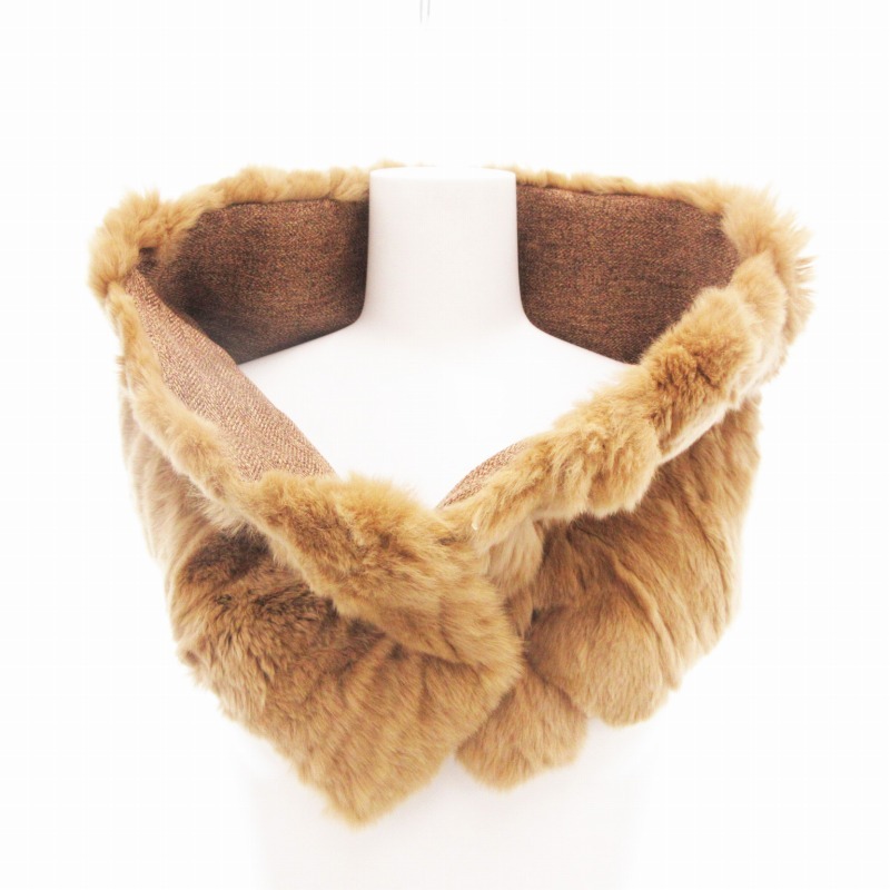 未使用品 キャセリーニ casselini fifth avenue タグ付き ティペット マフラー ラビットファー 茶 ブラウン /UD