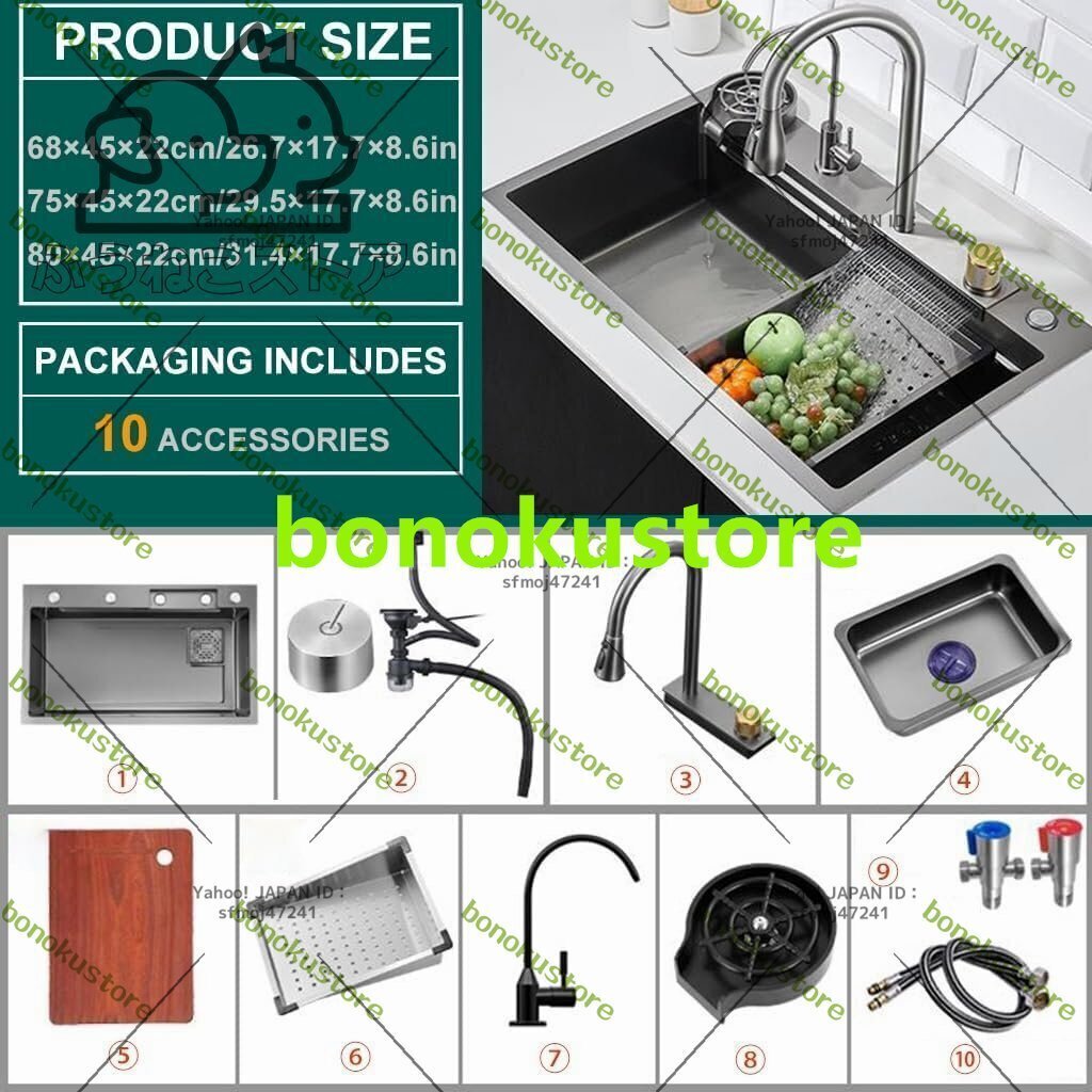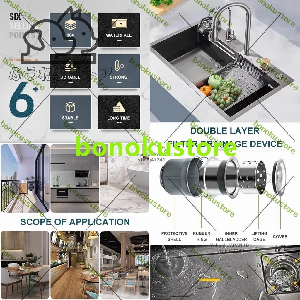 商品説明 商品説明 ??【水槽アタッチメントセット】水槽、コンソール排水装置、雨舞蛇口、排水鉢、まな板、排水かご、清水蛇口、加圧ガラス洗浄機、冷熱角弁、冷熱吸水管を含む。この水槽はいろいろなサイズがあり、100%衛生的で、食べ物にやさしいので、あなたの家には欠か