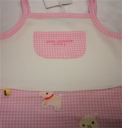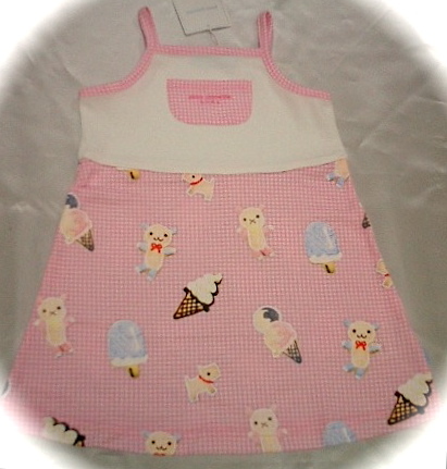 身頃は白、スカート部分はピンクと白のチェック柄にクマちゃん、テリア、アイスクリームの