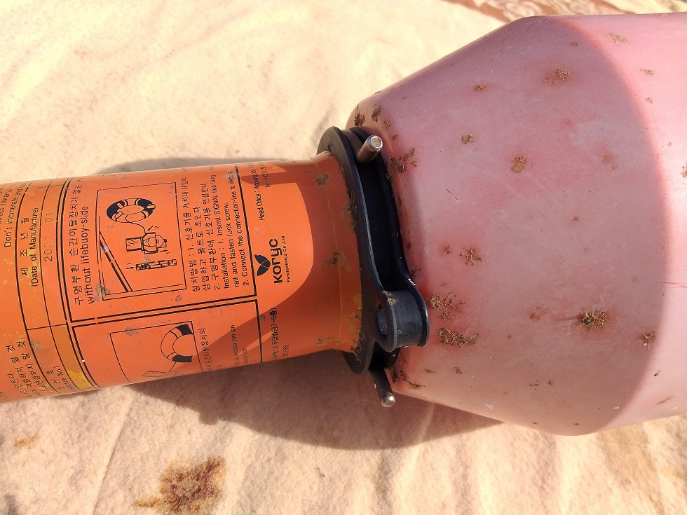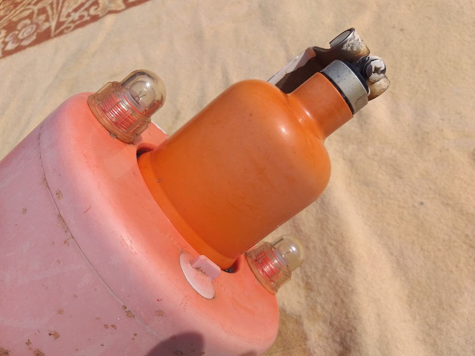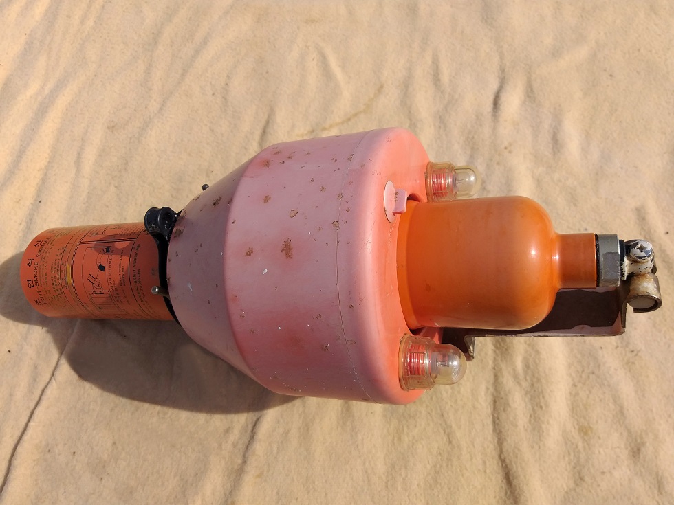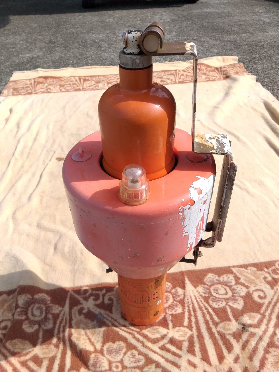 【壽】航海,漁業専門向きの特大Light-smoke singal type SOLAS標準救命浮輪用自動発煙自動点滅浮灯信号器 韓国Koryo社製 動作品 現状品