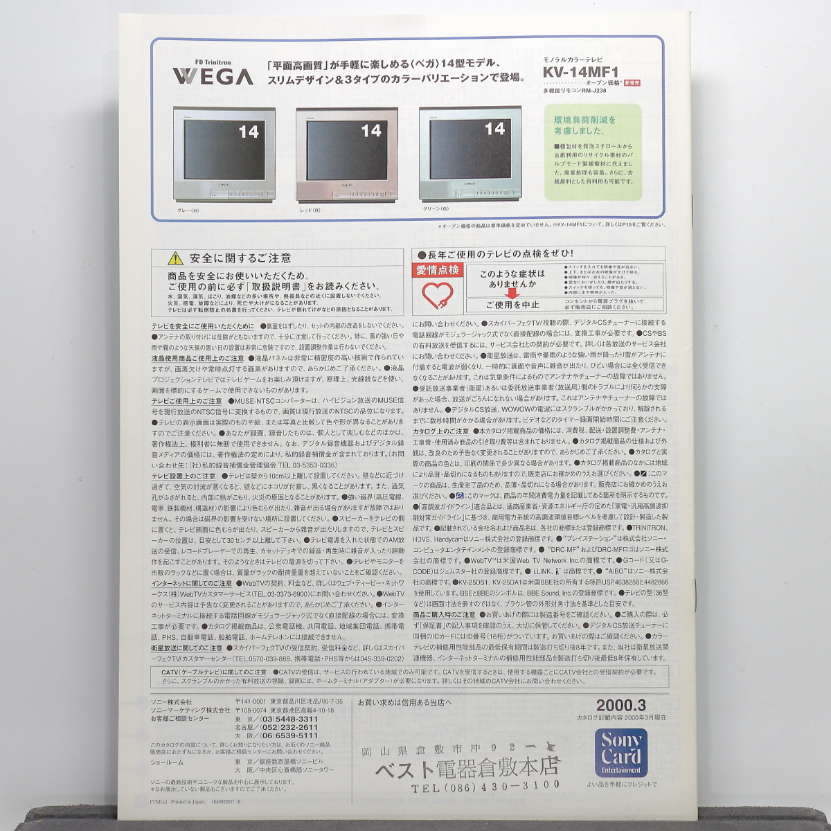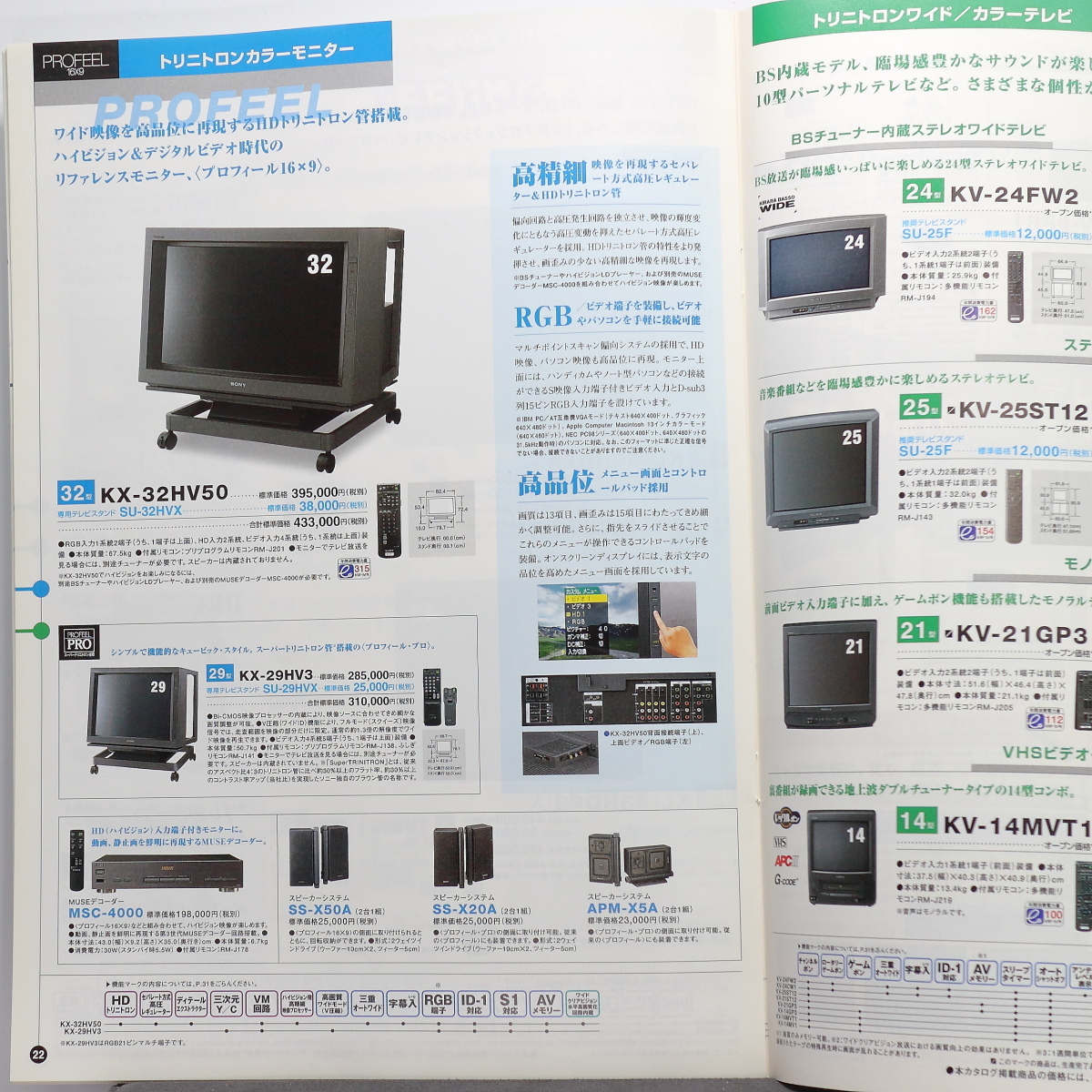 | 【当時物】 SONY/ソニー トリニトロン カラーテレビ/モニター 総合カタログ / 2000年3月 / ベガ プロフィールプロ | |