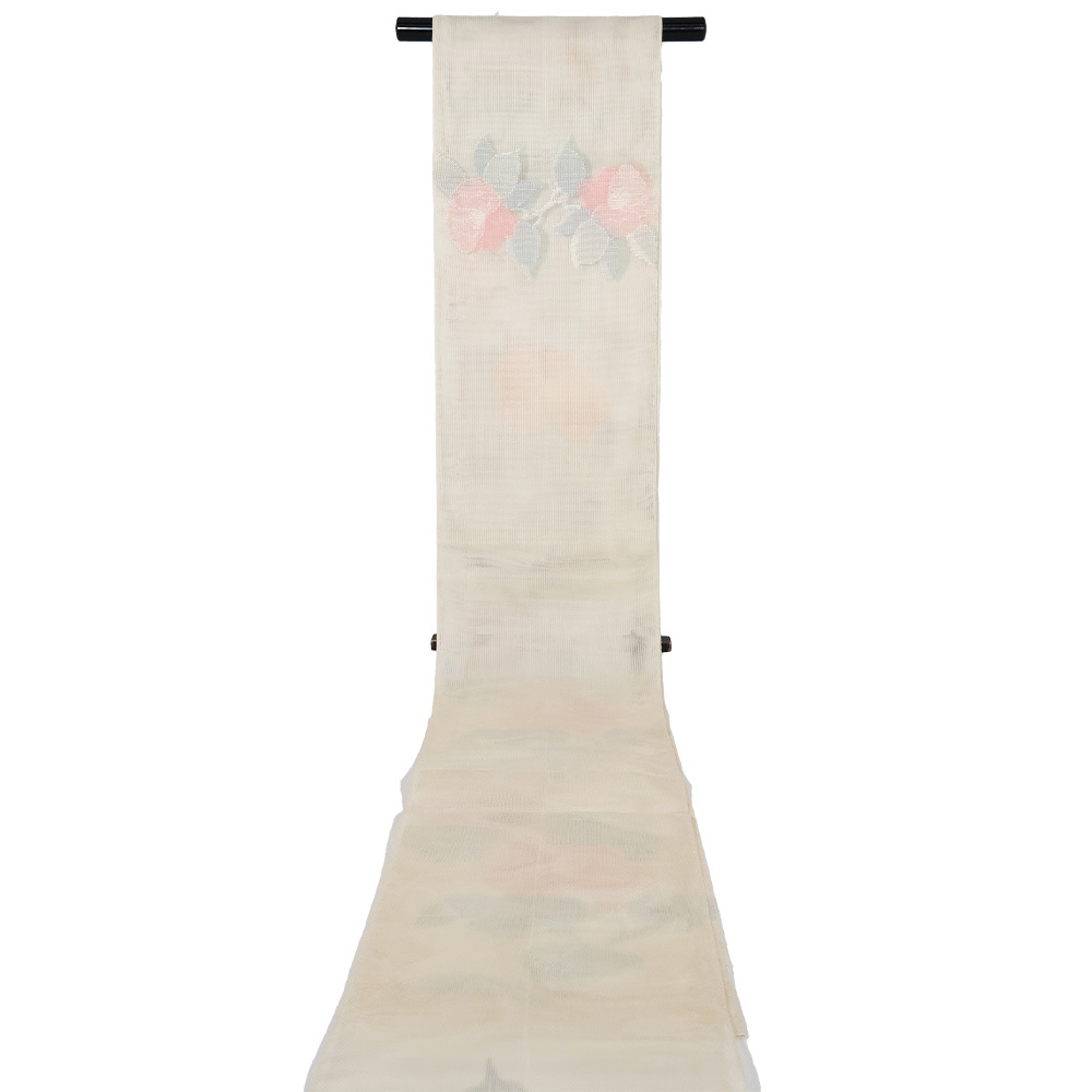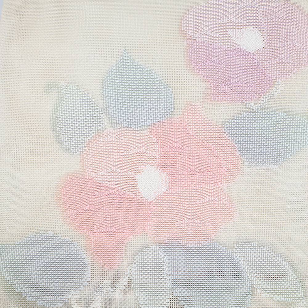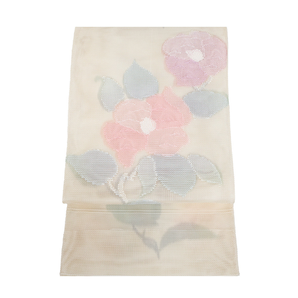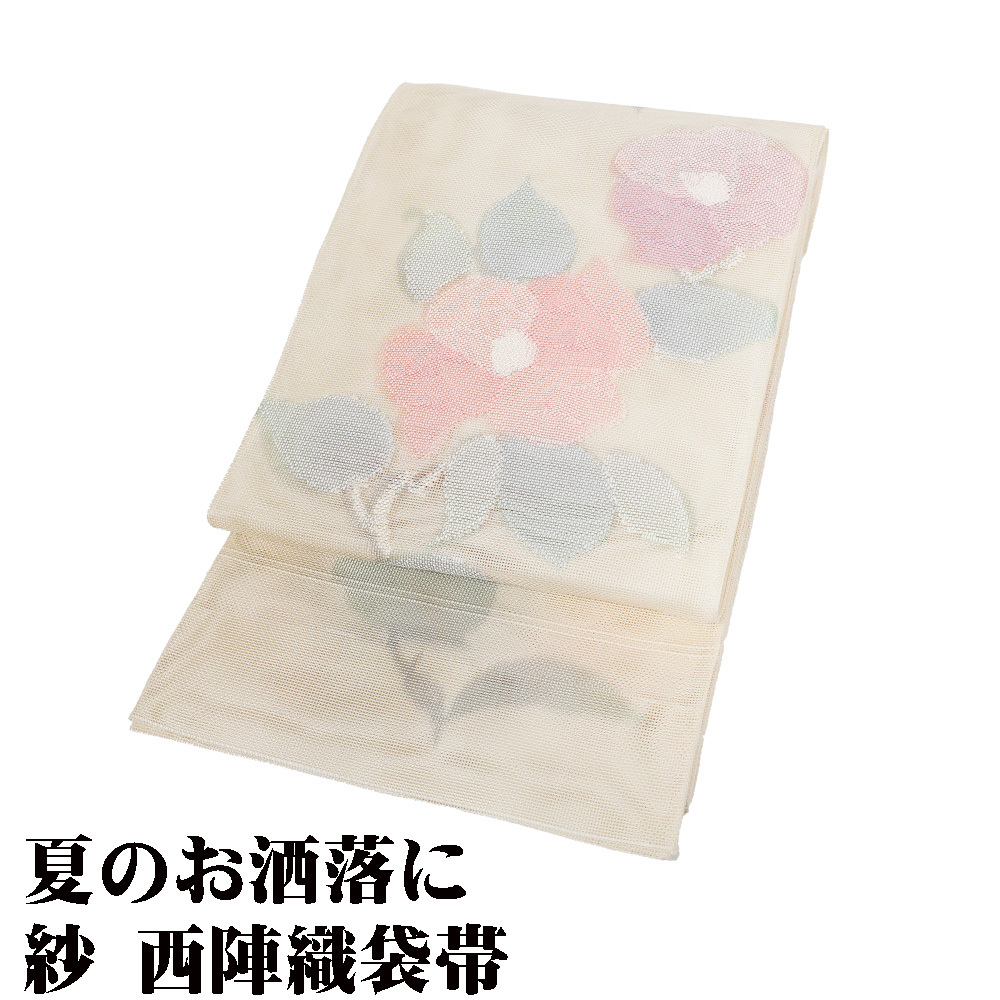 | 紗 西陣織袋帯 ベージュ暈し地 花柄 仕立て上がり | |