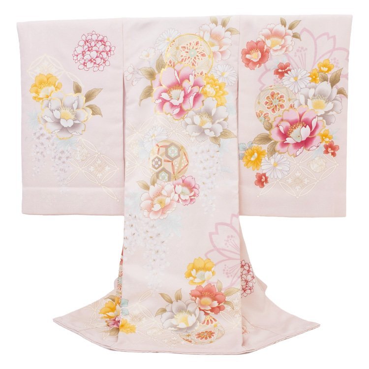 女の子用のお宮参りの着物です。 着物と長襦袢がセットになっています。 |