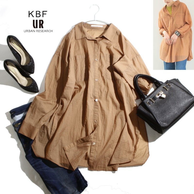 美品 KBF ケービーエフ URBAN RESEARCH アーバンリサーチ 春 夏 艶 透け オーガンジー ペーパータッチシアー ゆったり シャツ ブラウン