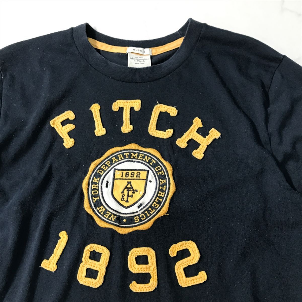 《良品◎》Abercrombie&Fitch アバクロンビー&フィッチ★ダメージ加工*Tシャツ*カットソー*ネイビー*サイズM(MS4003)◆S60