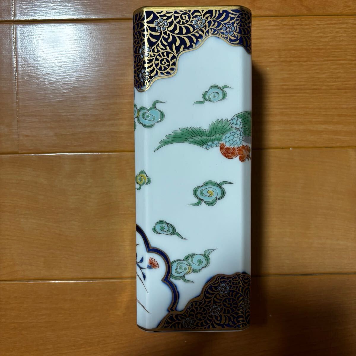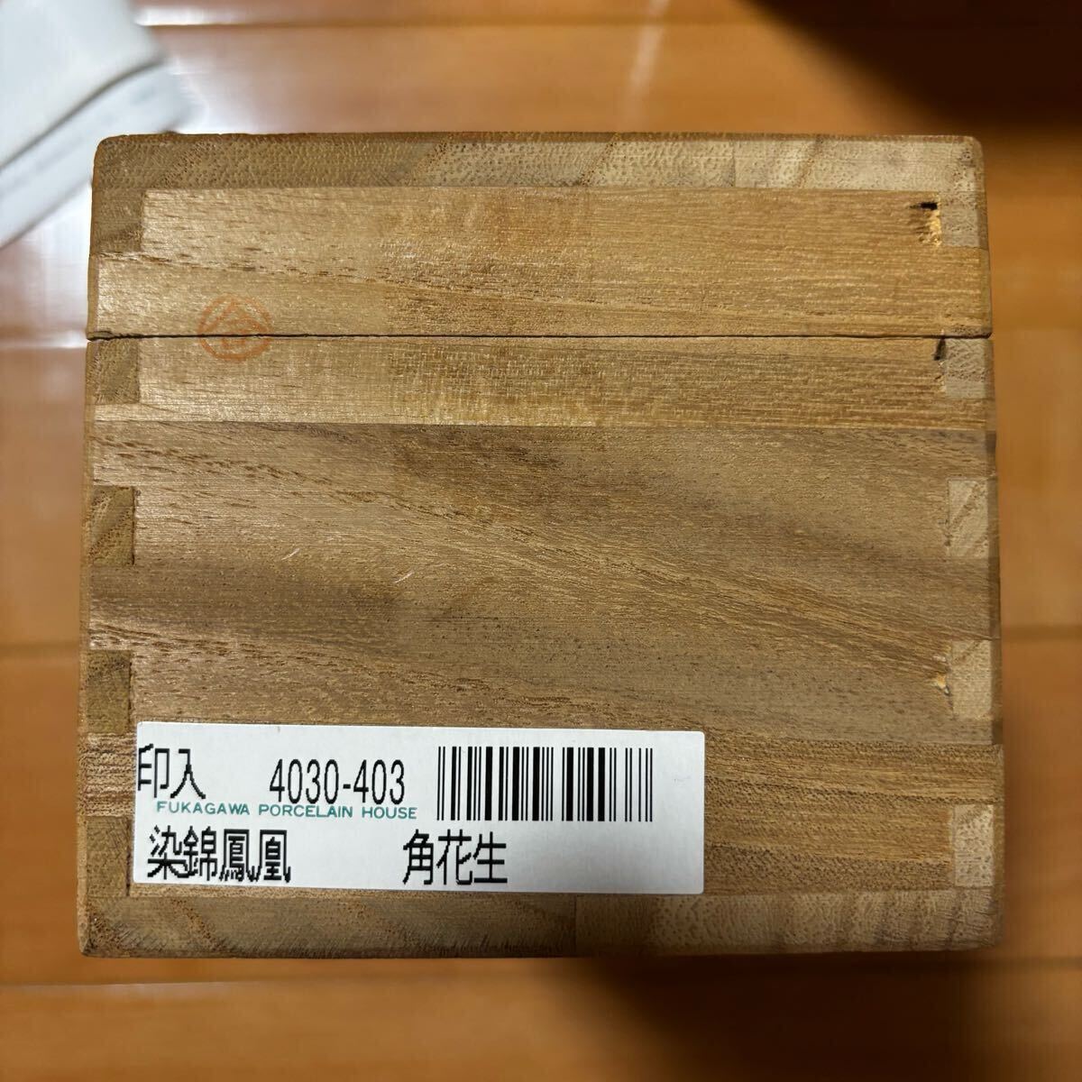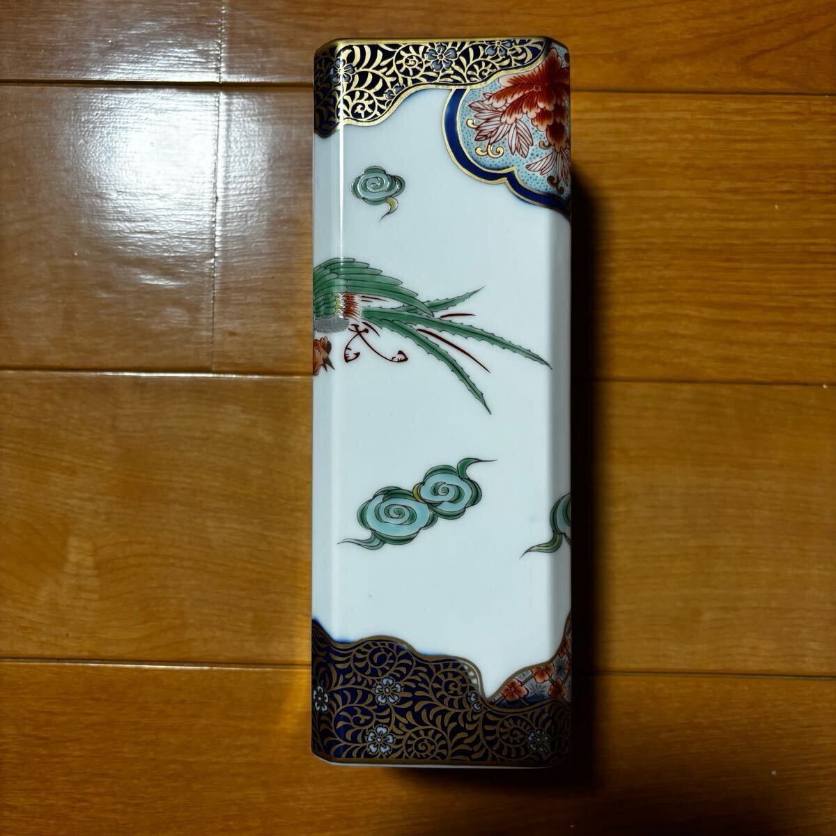 未使用 深川製磁 有田焼 花瓶 染錦鳳凰 角花生 宮内庁御用達 金彩 木箱 送料無料