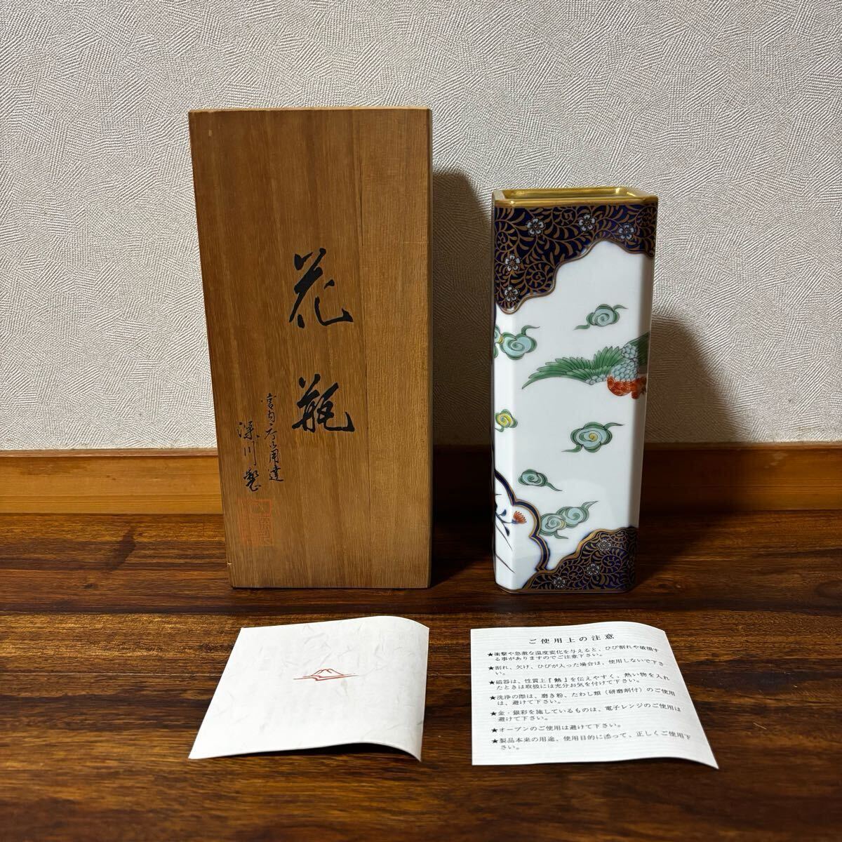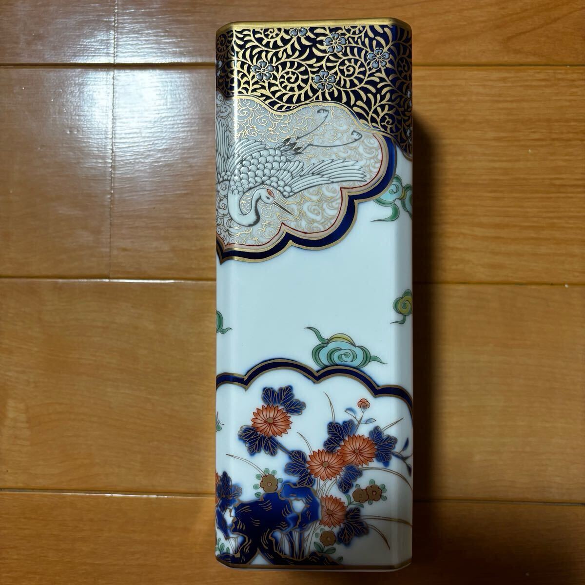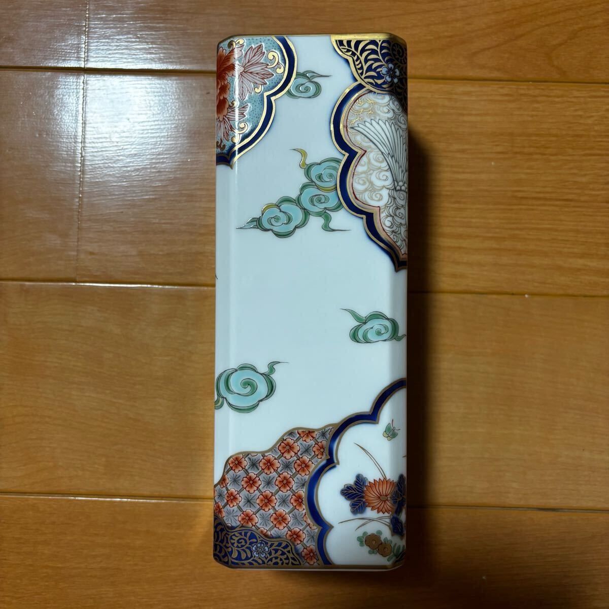 未使用 深川製磁 有田焼 花瓶 染錦鳳凰 角花生 宮内庁御用達 金彩 木箱 送料無料