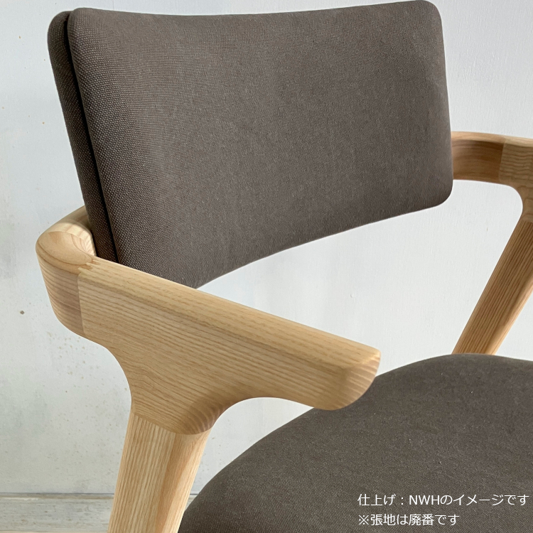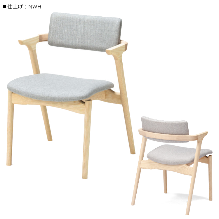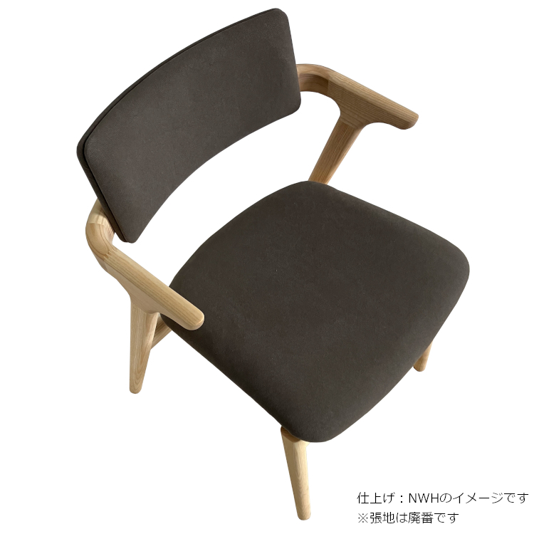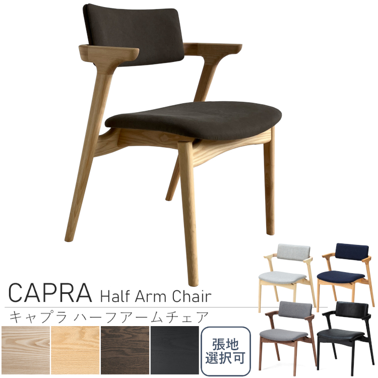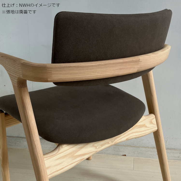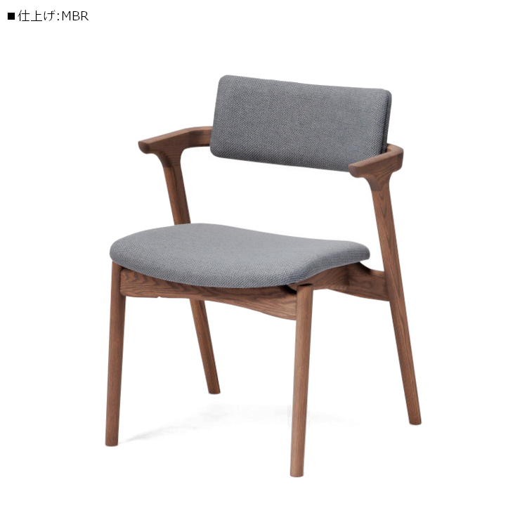 宙に浮いたようなバックレストがが特徴な、モダンなスタイルのセミアームチェアです。すべてのパーツが丁寧に作られ、座はしっかりと体重を支え、長く座っていても疲れにくいチェアです。フレームは4種、張地は5種からお選びいただけます。
