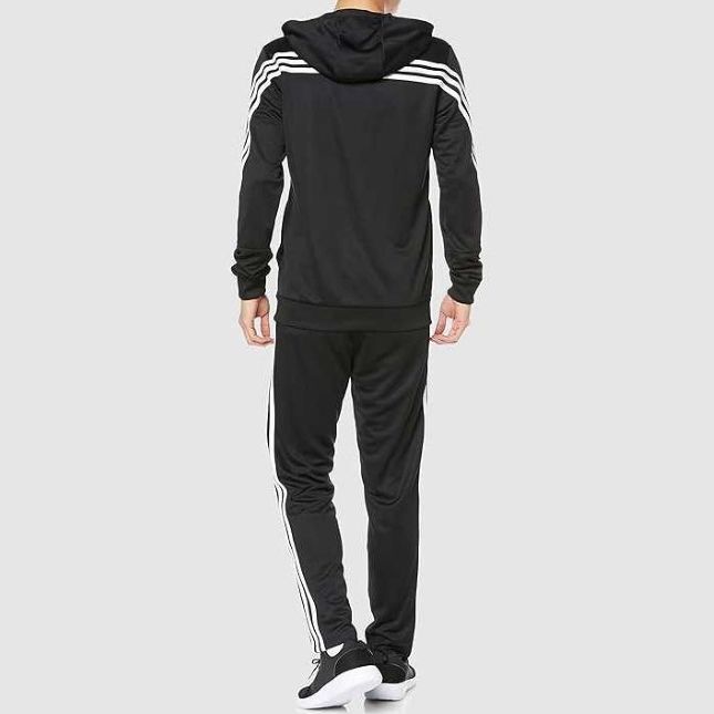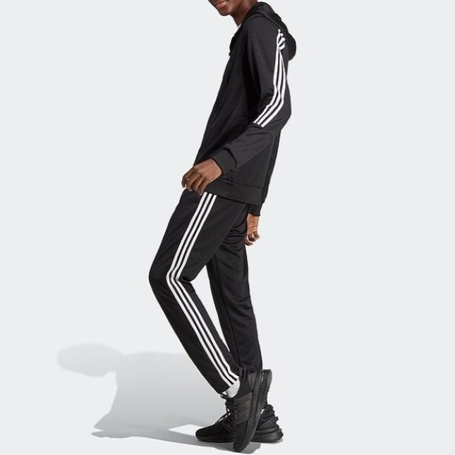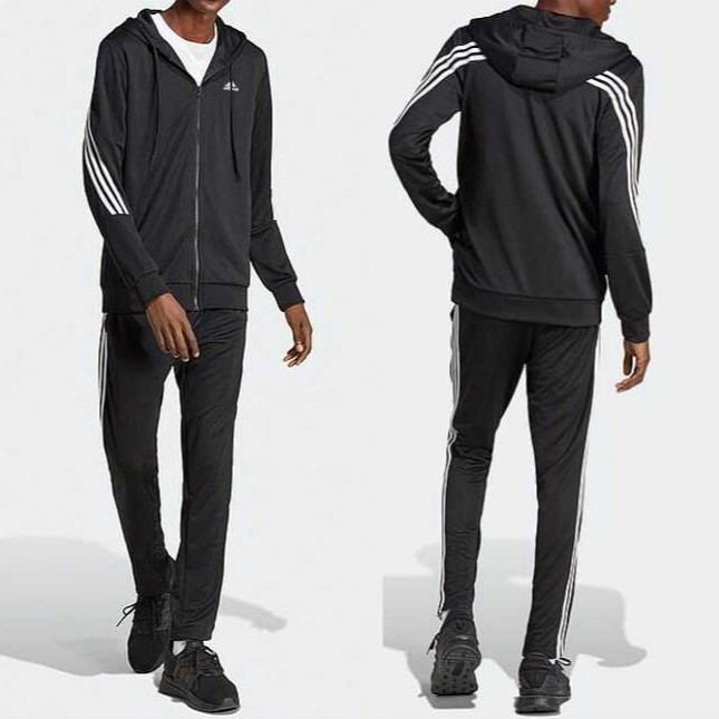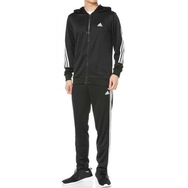 アディダス スリーストライプス トラックスーツ Lサイズ ブラック/ホワイト 黒 白 フルジップフーディー&パンツ 薄手 ジャージ上下