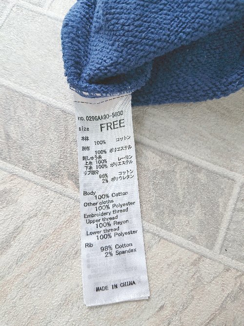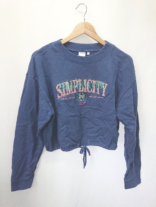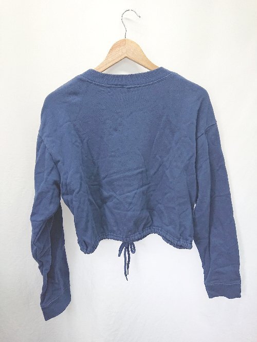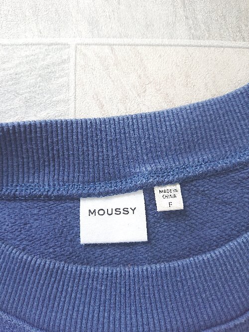 ◇ Θ MOUSSY マウジー 刺繍 ショート丈 長袖 トレーナー スウェット サイズF ブルー レディース E