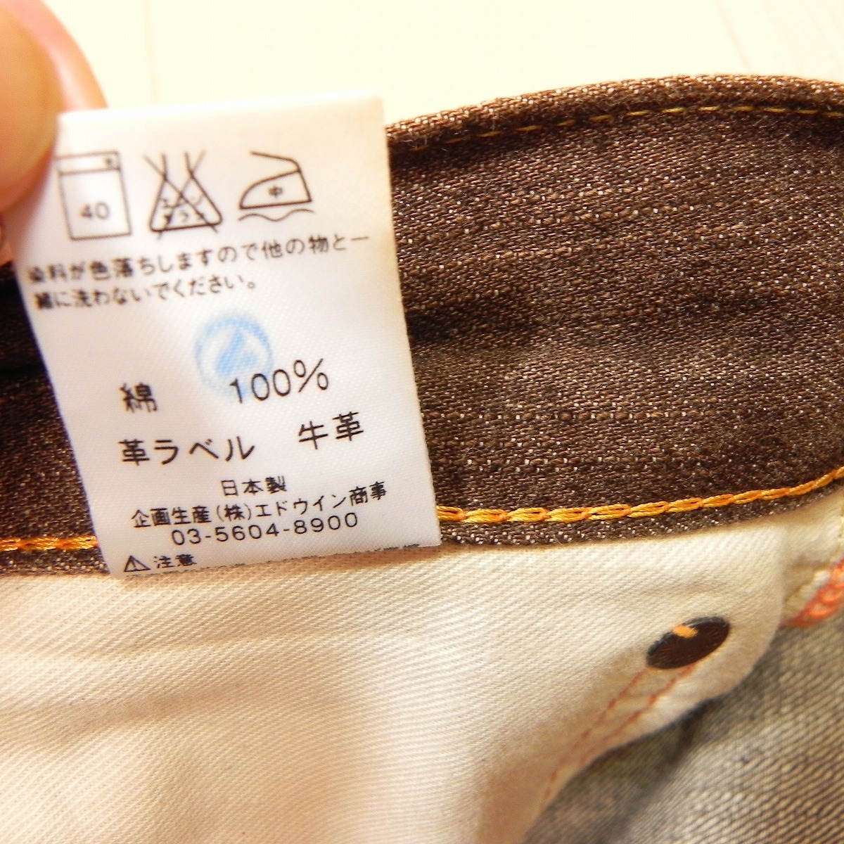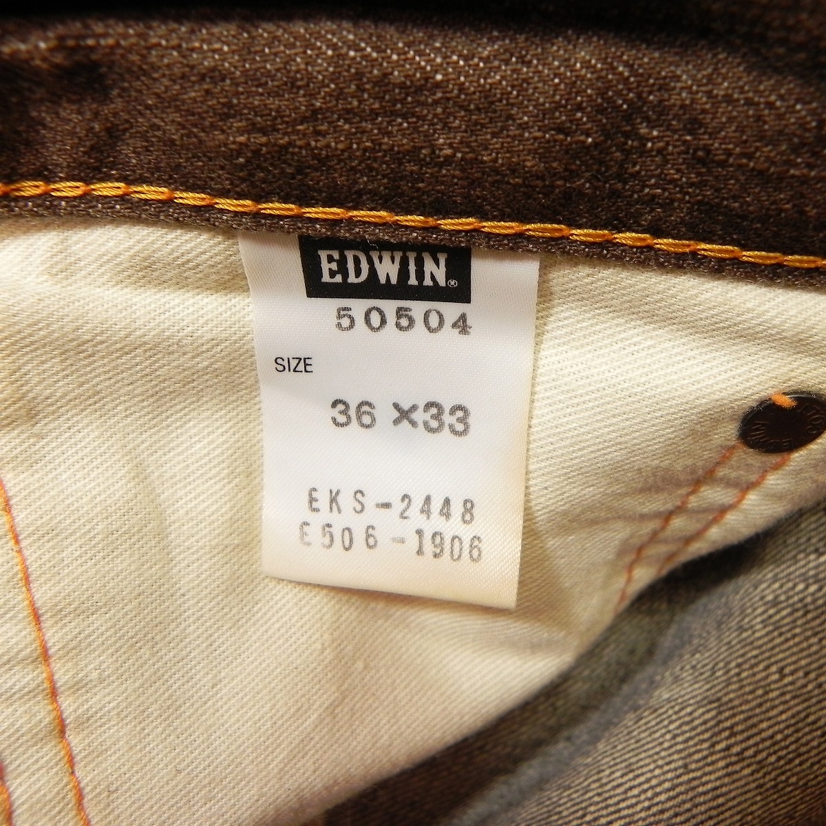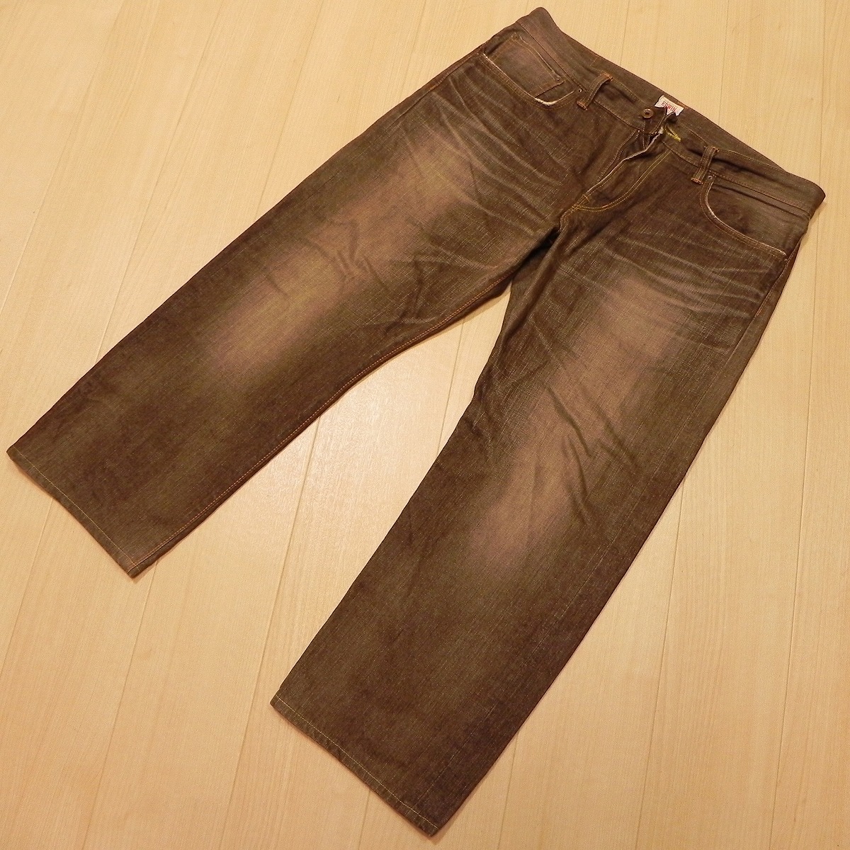 )115★ 雰囲気抜群 ユーズド加工 ★ 日本製 EDWIN エドウィン 505ZX 赤耳 セルビッチ ブラウン デニムパンツ W36 ジーンズ 古着 即決 ★