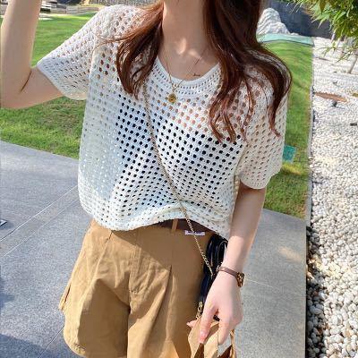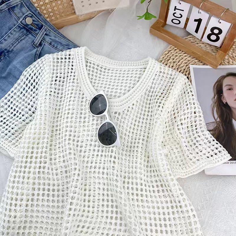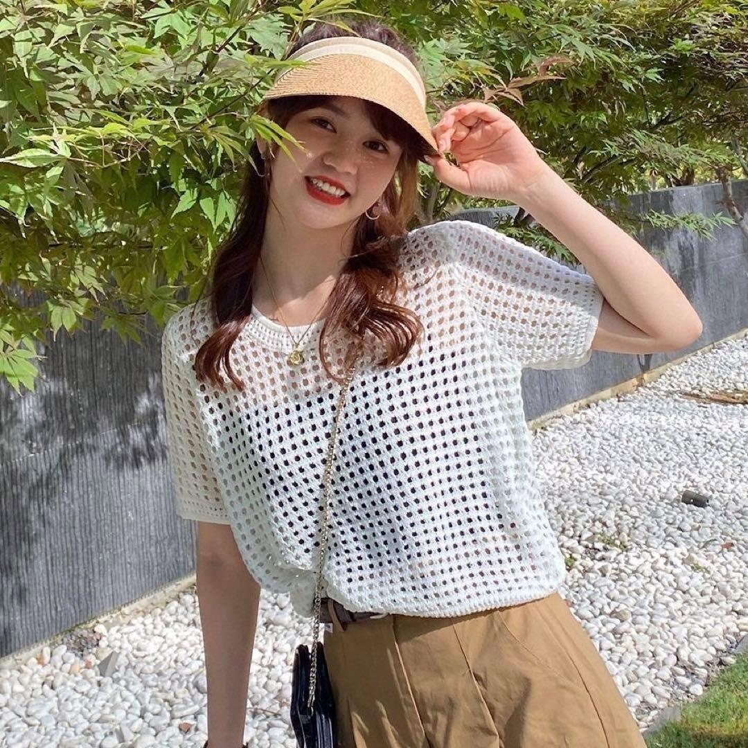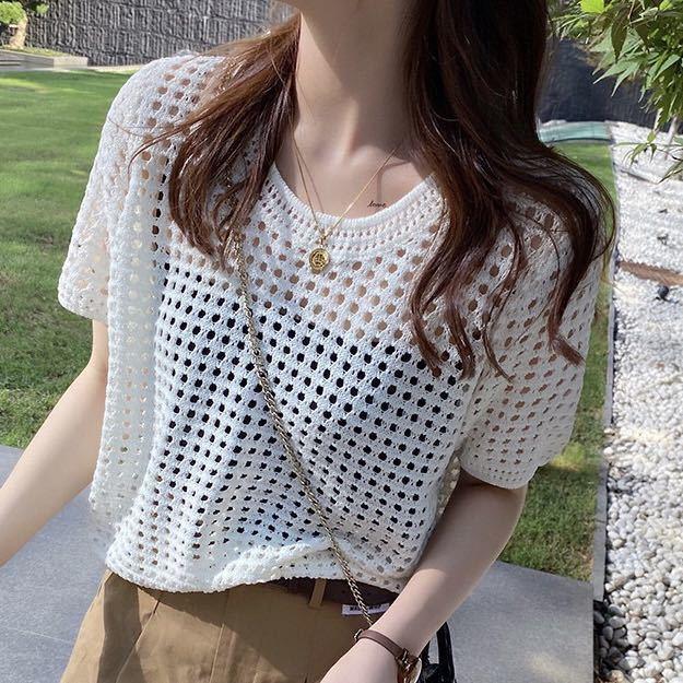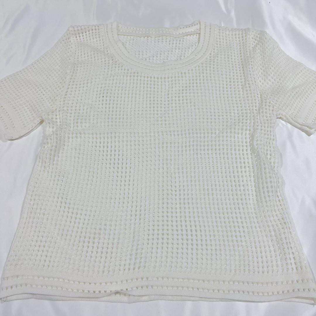メッシュ編みのニット素材で、軽やかな着心地が魅力的なトップスです♪