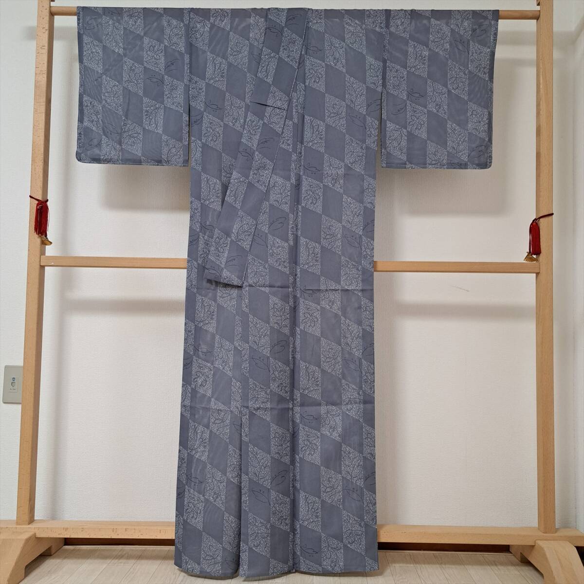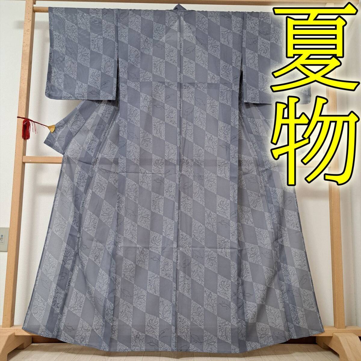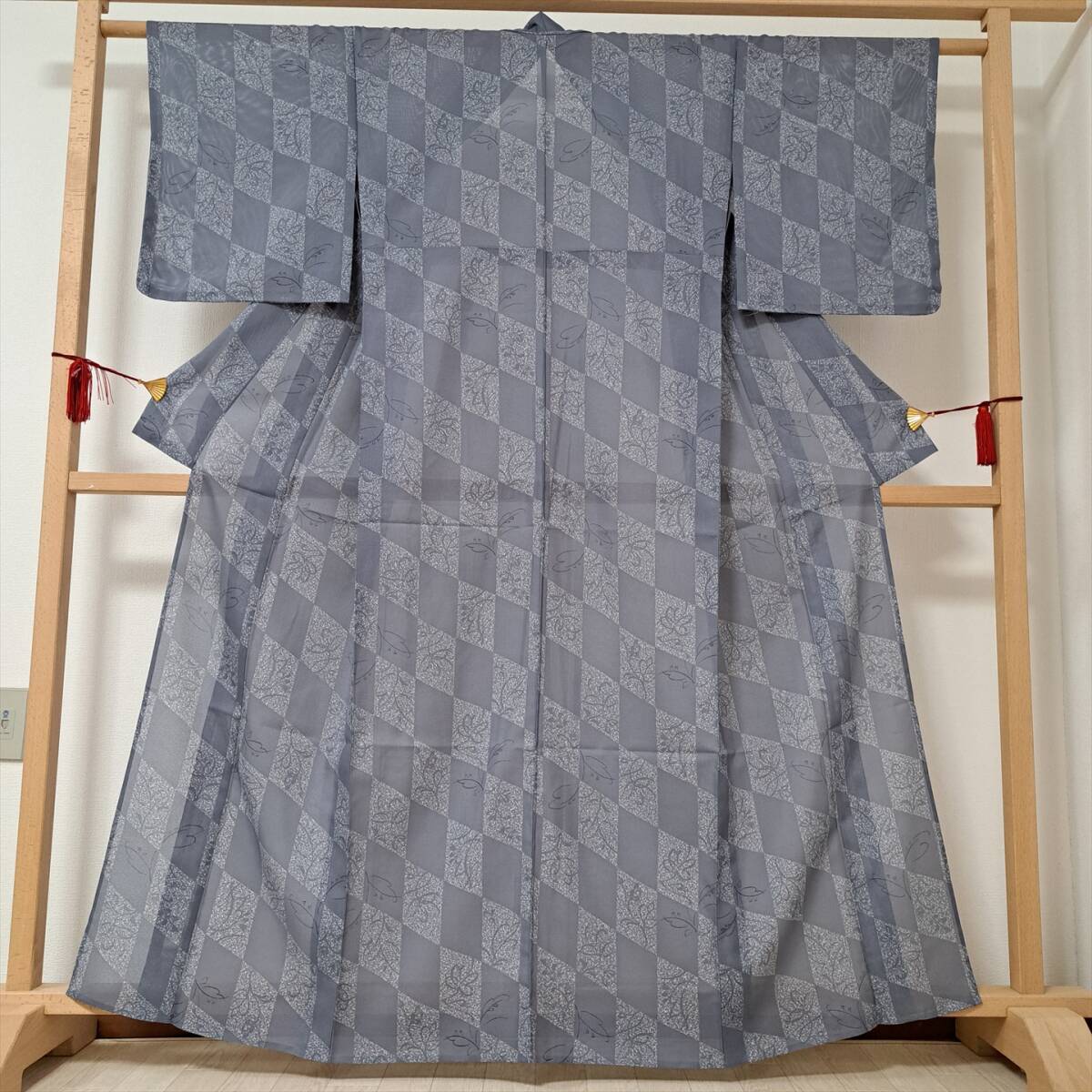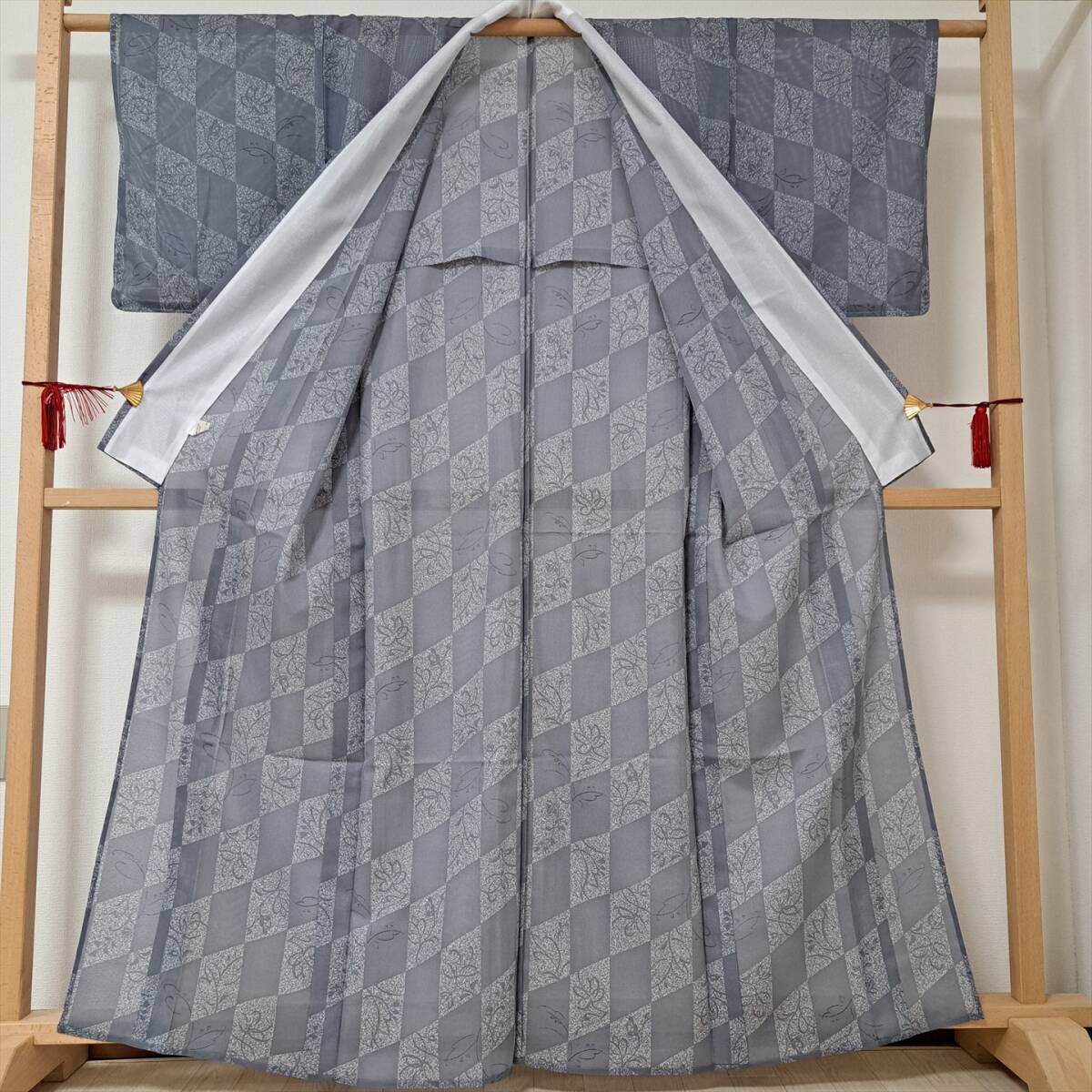 ■着物の越田■裄65.5身丈163 化繊 小紋 夏物 絽 ★美品★ 洗える着物 ポリエステル 夏物着物 夏着物 盛夏 普段着 お出かけに ■ほ10R01a