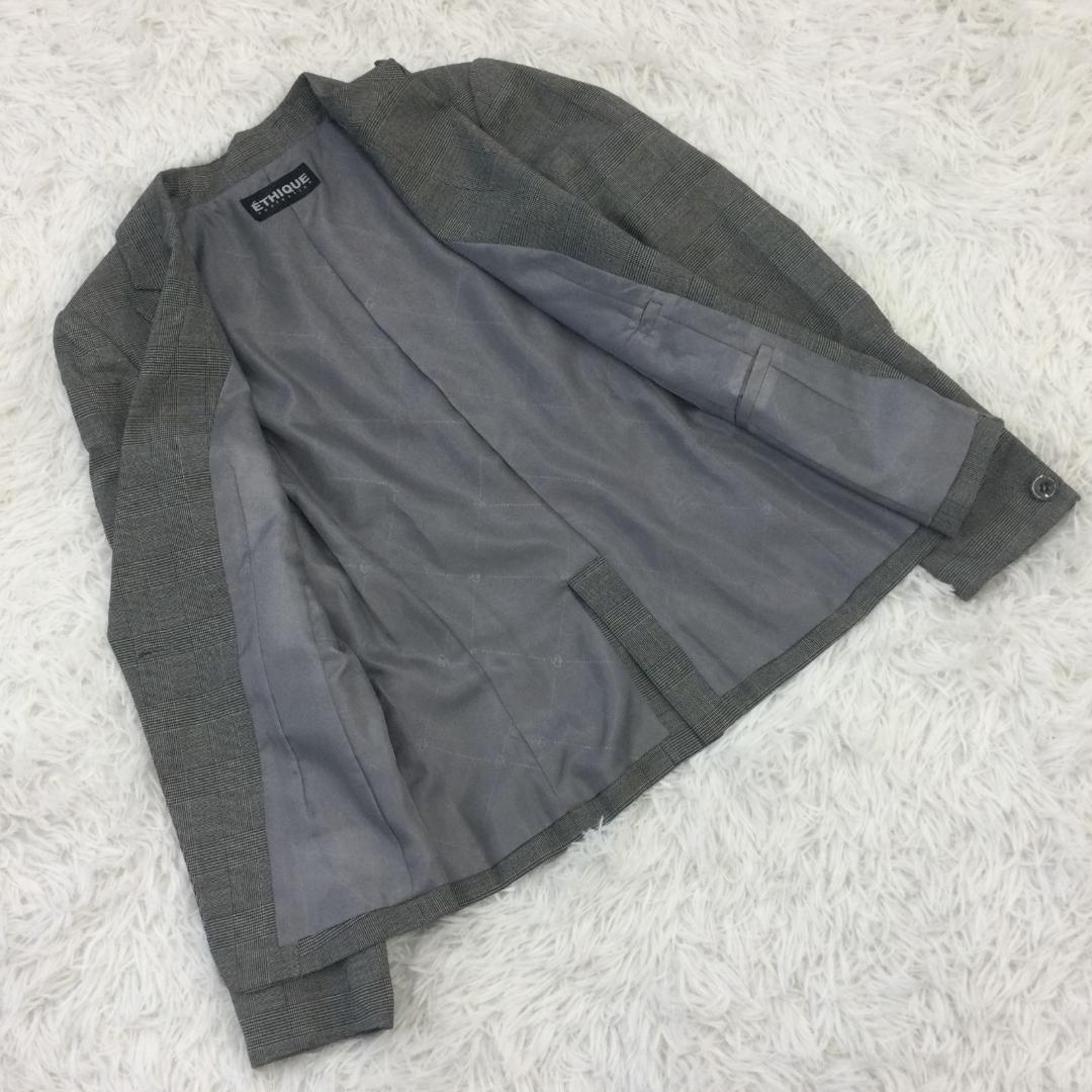 【AA1134】 THIQUE エティック S テーラードジャケット グレンチェック 上品 秋 通勤 ビジネス スーツ グレー