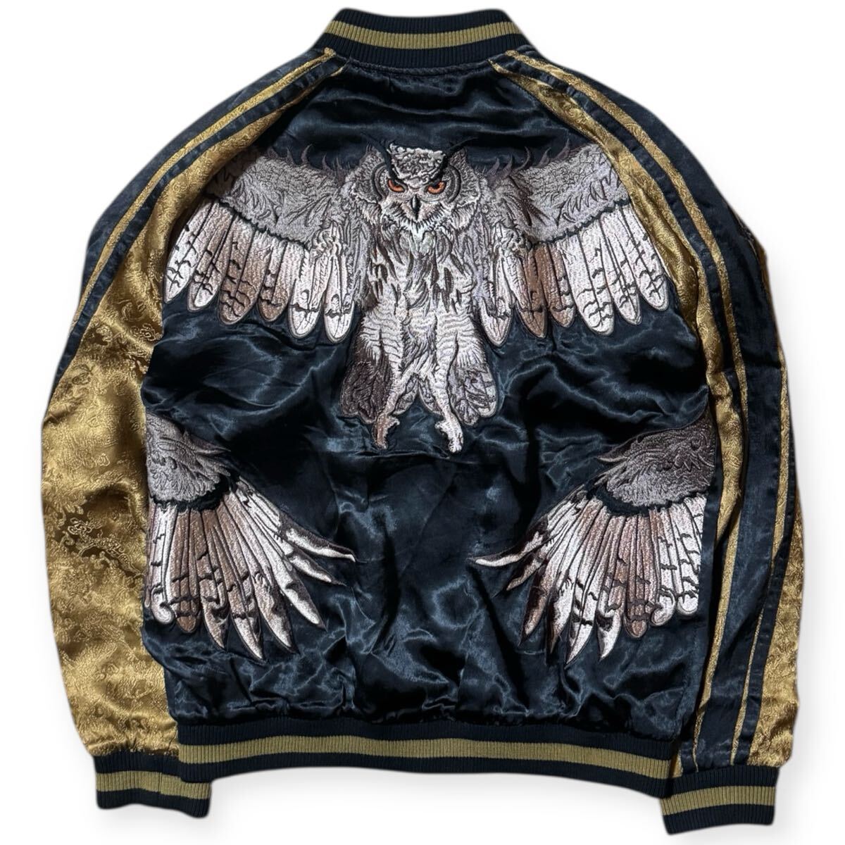 豪華刺繍 花旅楽団 梟 リバーシブル スカジャン Mサイズ