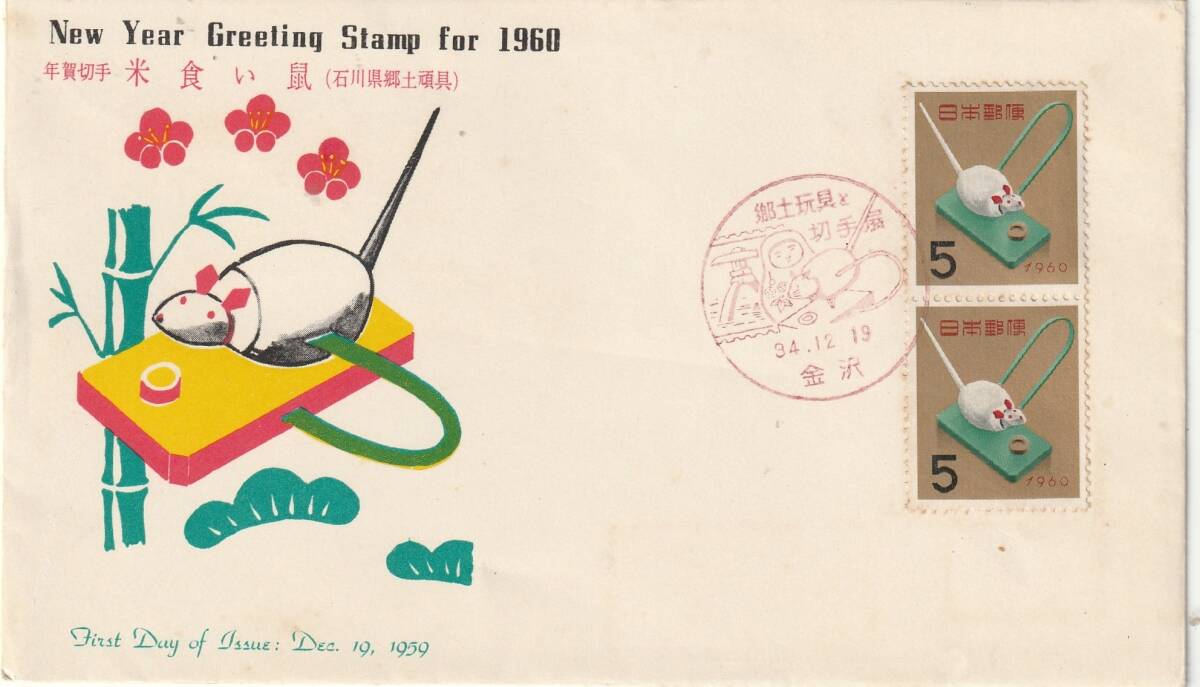 FDC 1959年  年賀切手   ねずみ  5円2貼   JSB