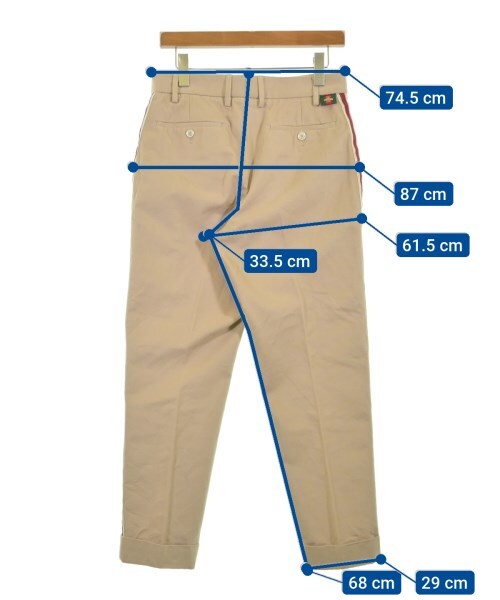 | ウエスト:74.5cm,裾周り:29cm,ヒップ:87cm,わたり:61.5cm,股上:33.5cm,股下:68cm |