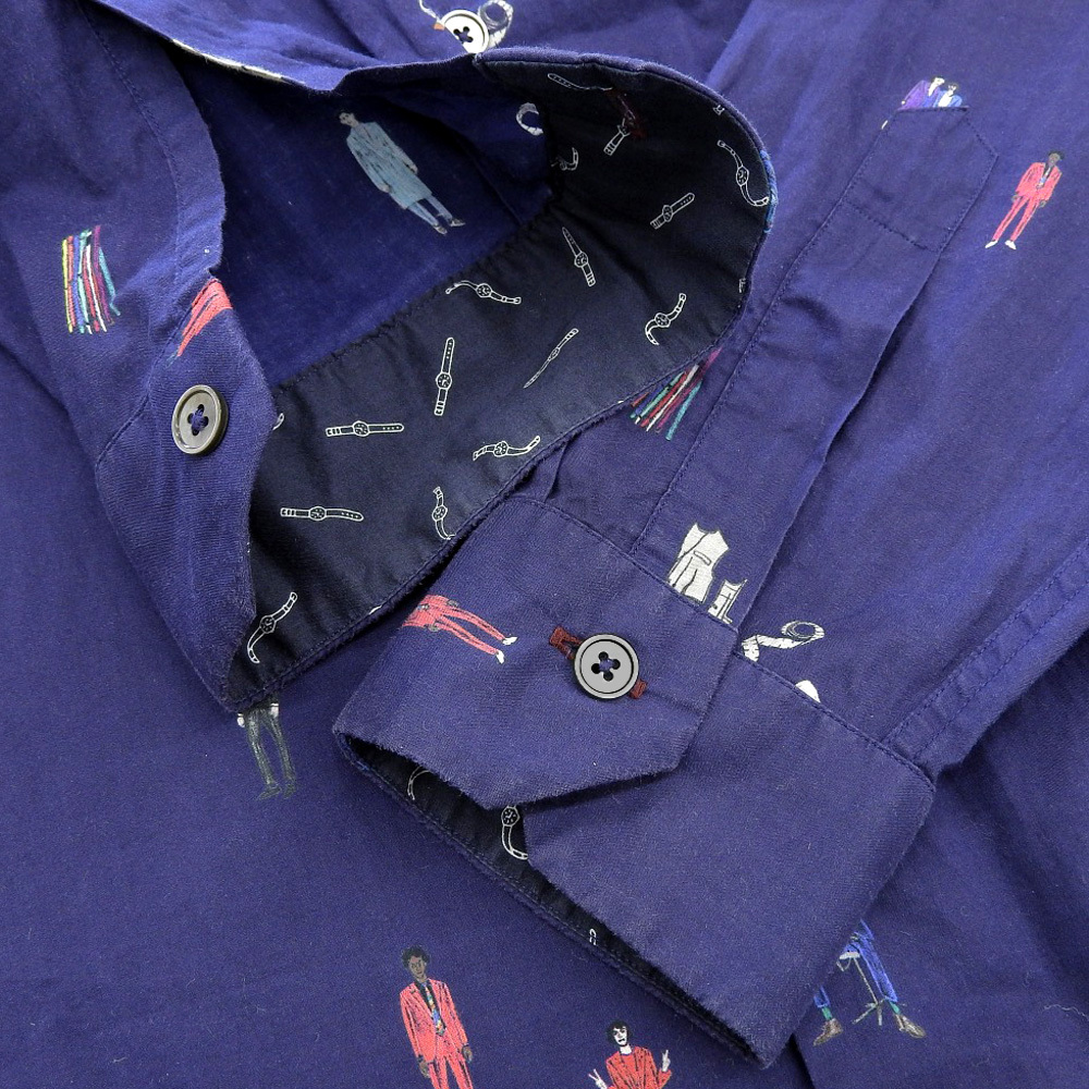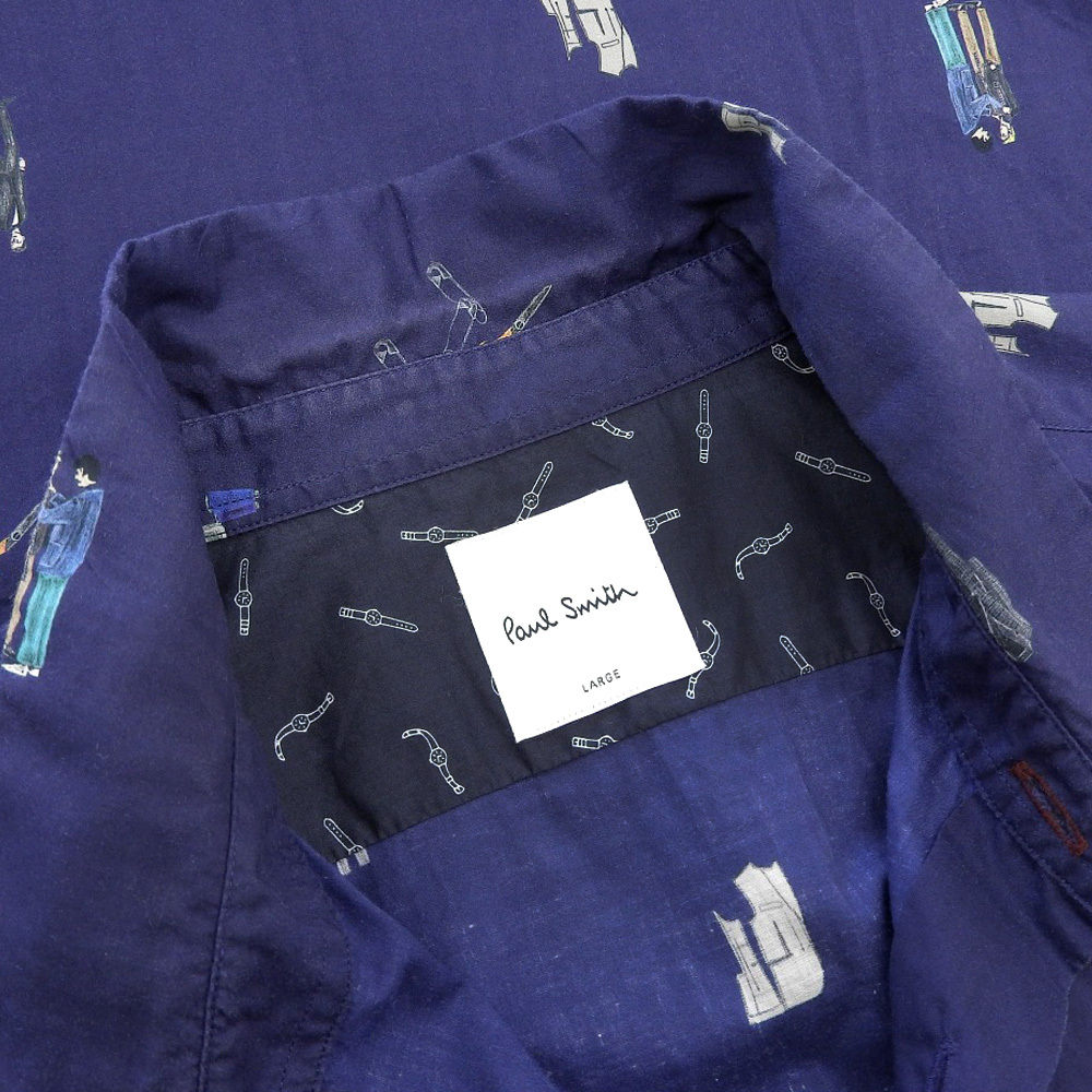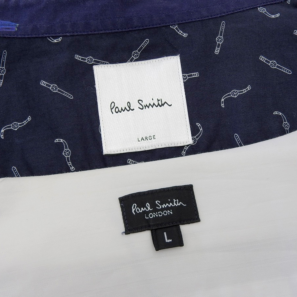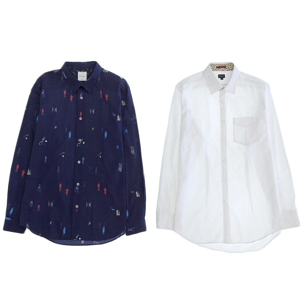 | 美品 ポールスミス ジャガード ホワイト ストライプ ドレス シャツ & テイラー プリント マルチカラー 総柄 シャツ 2枚セット L メンズ |