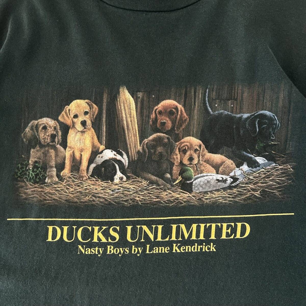 ・アイテム形状:XXL~ 90s カナダ製 Ducks Unlimited Nasty Boys Lane Kendrick 犬 子犬 カモ Tシャツ ビックサイズ