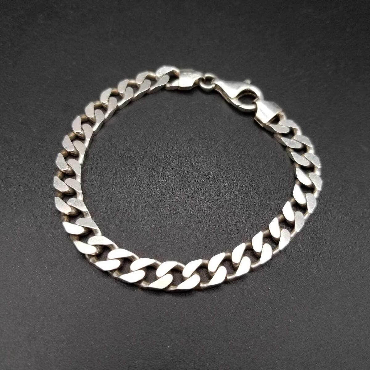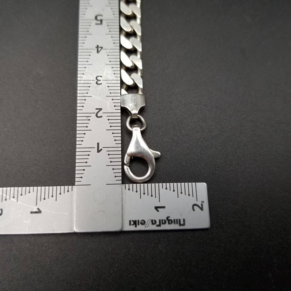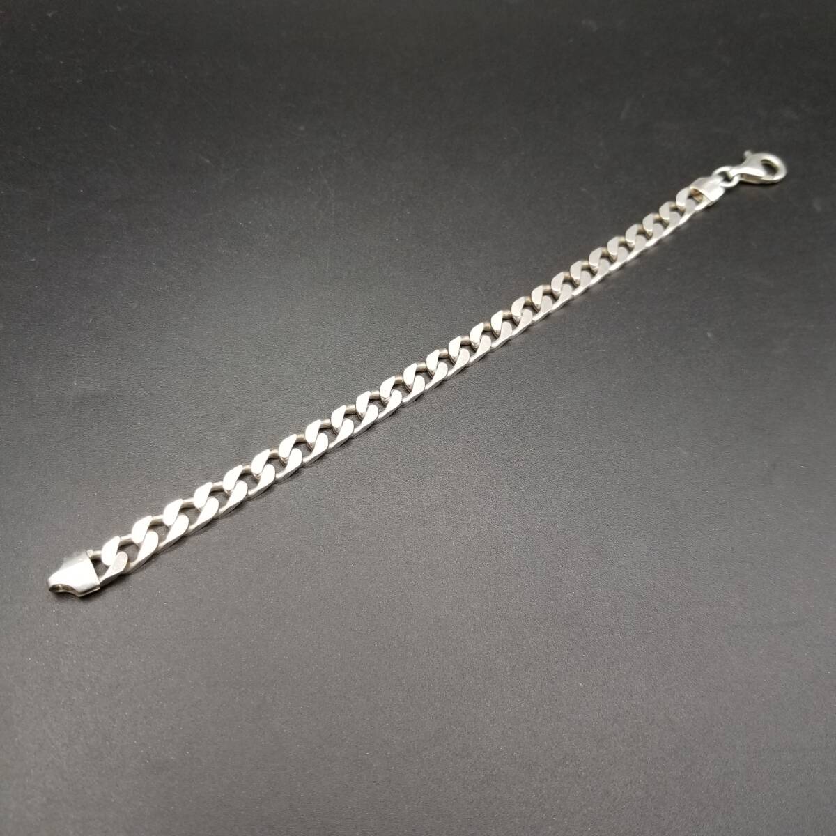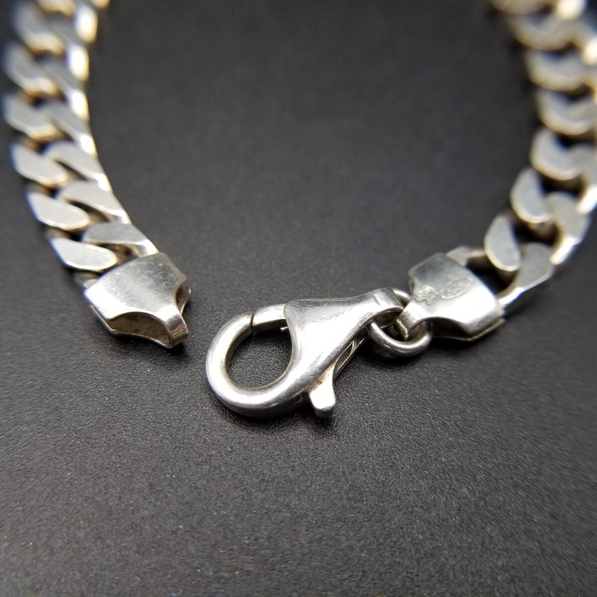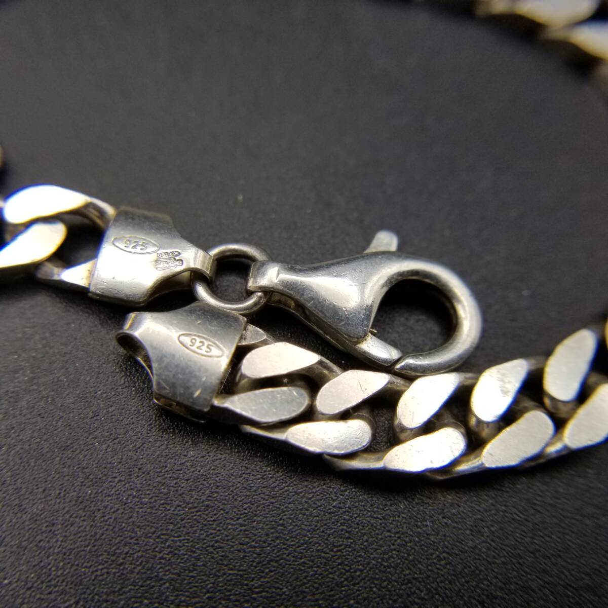 英国 ヴィンテージ シンプル フラット喜平チェーン 925 シルバー ブレスレット 銀 スタイリッシュ メンズジュエリー Birmingham Convention マーク Y23-P