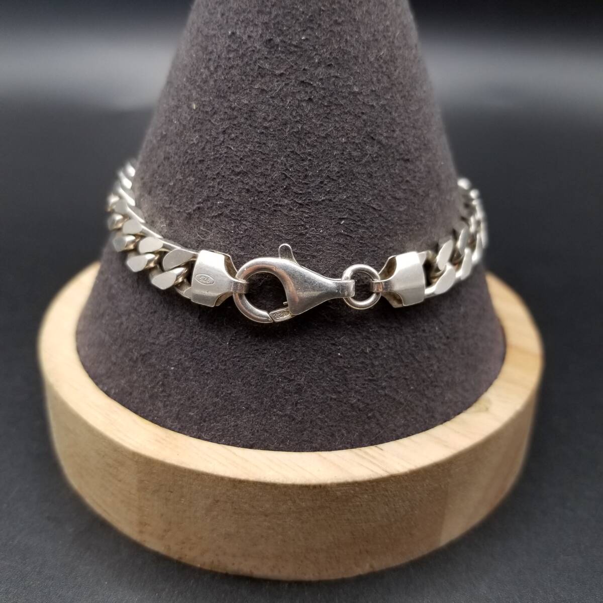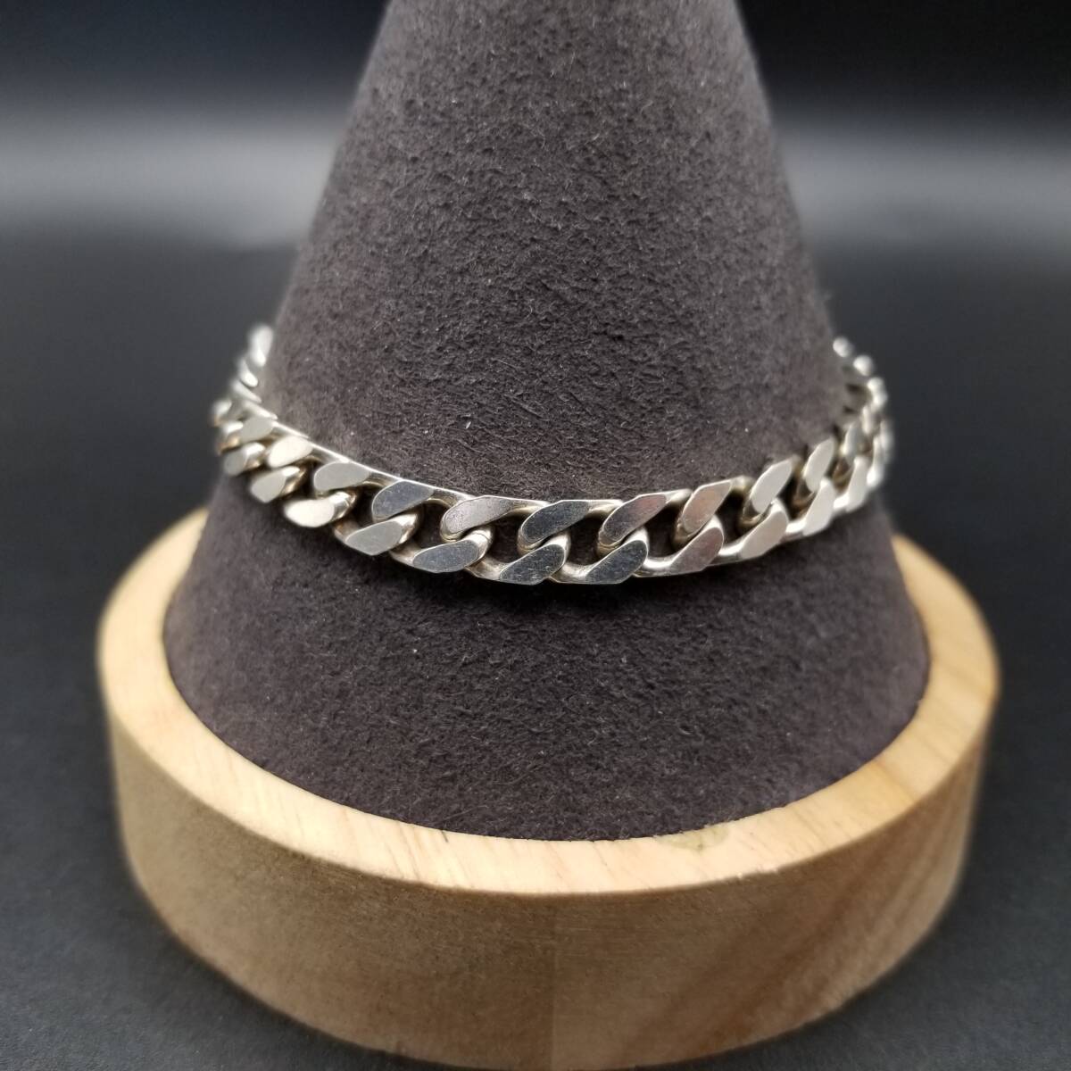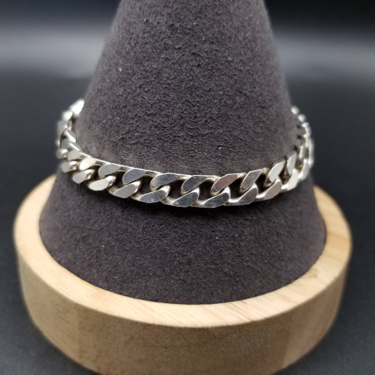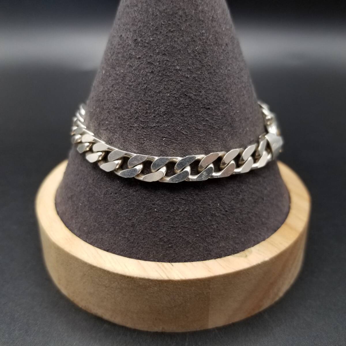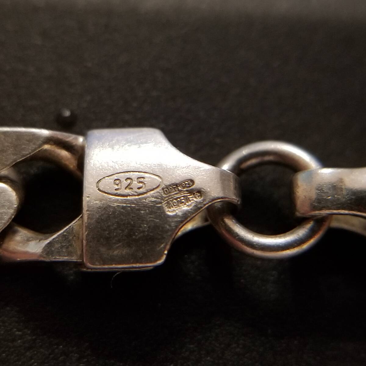 英国 ヴィンテージ シンプル フラット喜平チェーン 925 シルバー ブレスレット 銀 スタイリッシュ メンズジュエリー Birmingham Convention マーク Y23-P