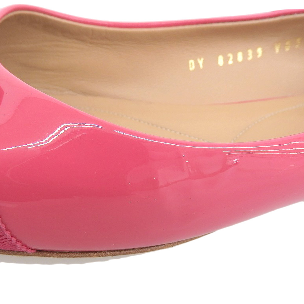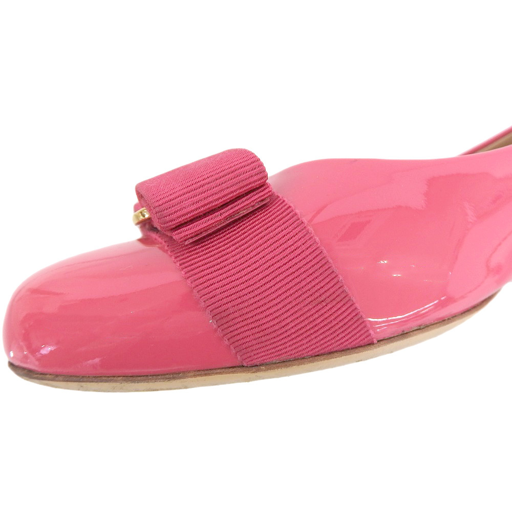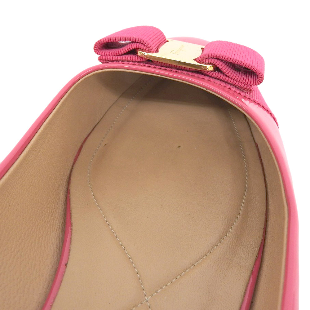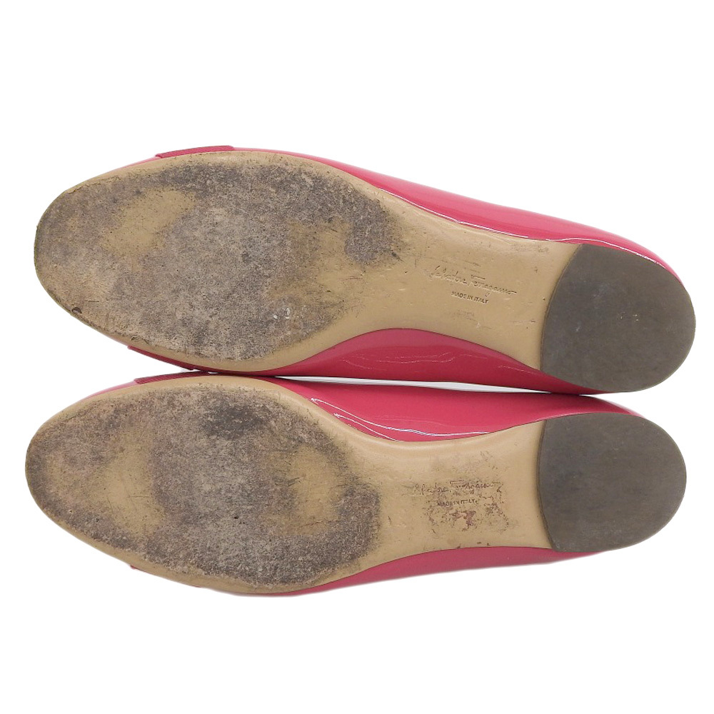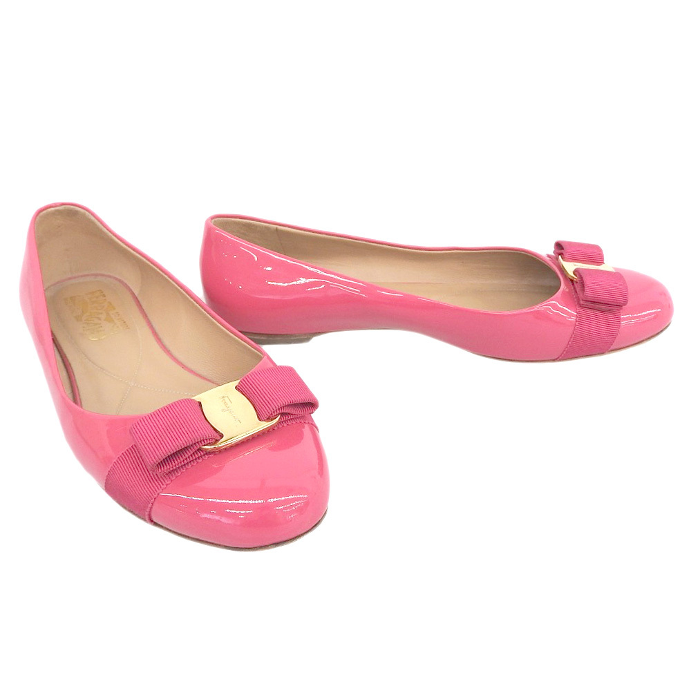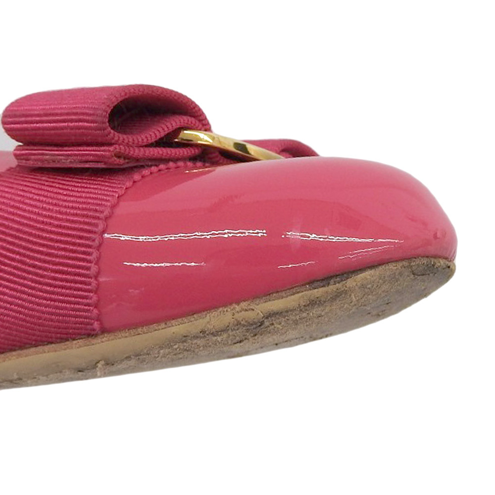 超美品 フェラガモ Salvatore Ferragamo 現行ロゴ ヴァラリボン エナメル フラット パンプス 8 1/2 26cm バレリーナシューズ ピンク |