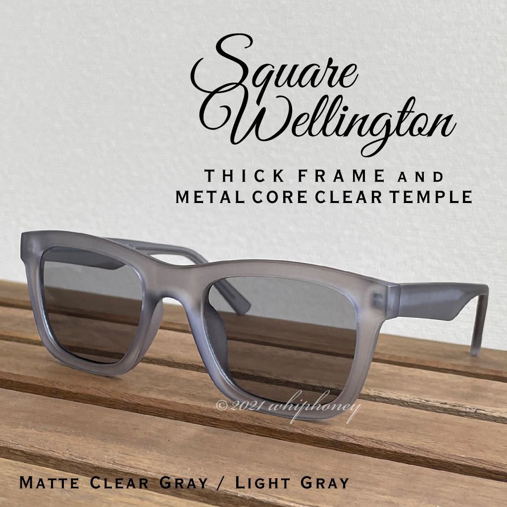 ワイドフレームウェリントンサングラスマットグレーライトグレーレンズ