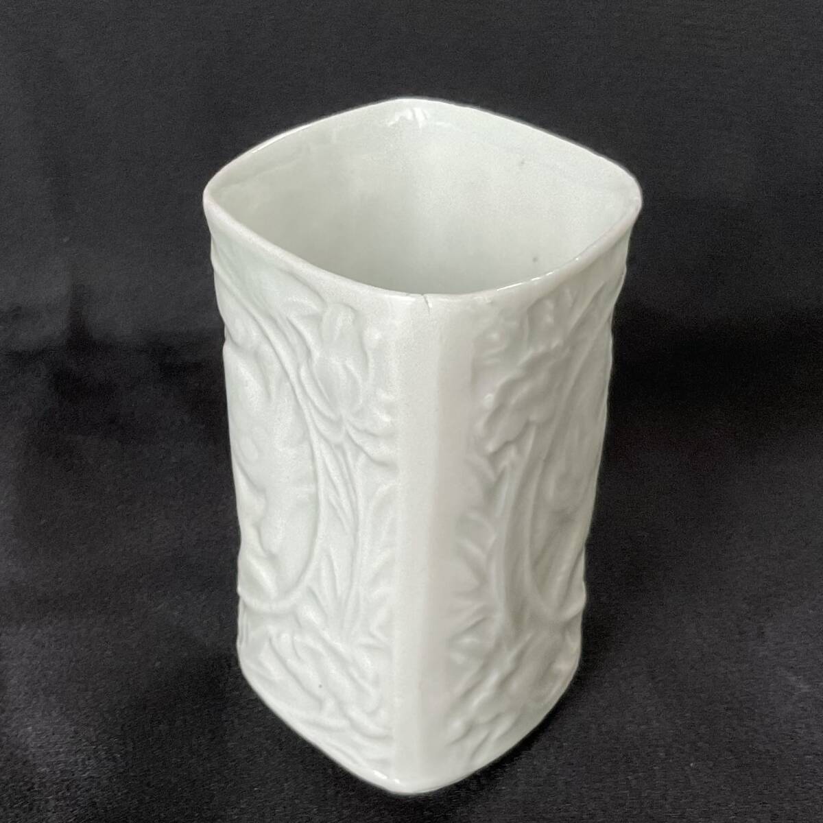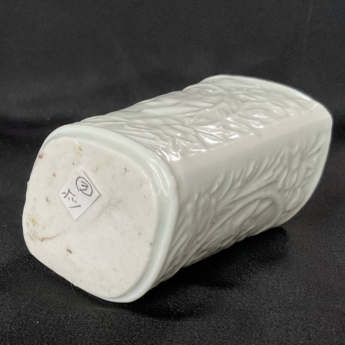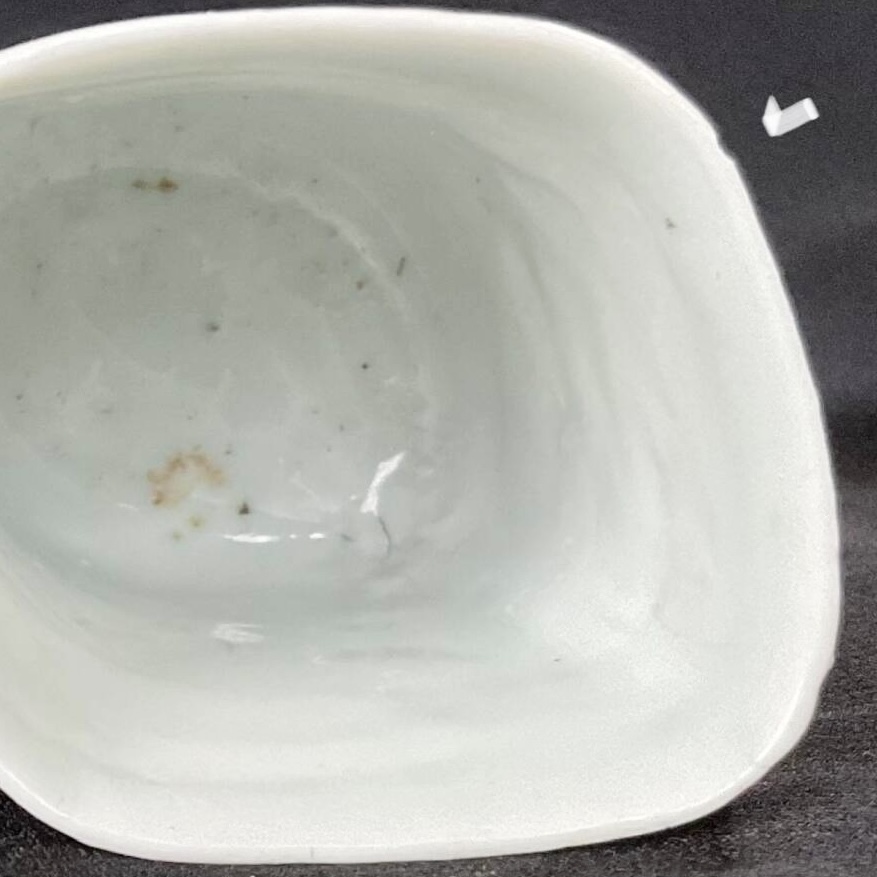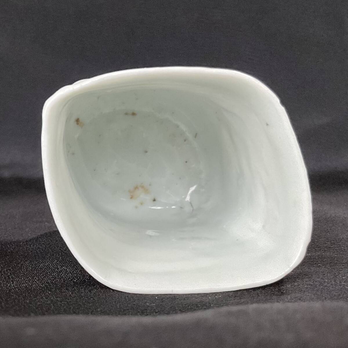 古九谷白磁陽刻唐獅子牡丹菱形筒向付猪口窯キズ有③