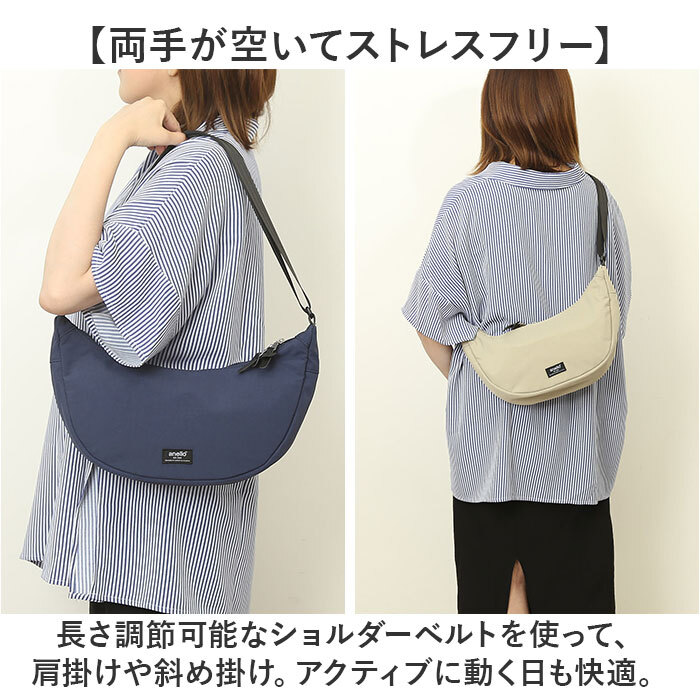 商品説明 | ・・【サッと持ち出せてお出かけの相棒に】 ・anelloのサイクルシリーズから、身軽にお出かけできる!ショルダーが新登場。 ・【風合いを生かしたシンプルデザイン】 ・洗いシワのような、ヴィンテージ感が特徴のナイロン生地。装飾を控えて極力シンプルに。 ・【両手が空いてストレスフリー】 ・長さ調節可能なショルダーベルトを使って、肩掛けや斜め掛け。アクティブに動く日も快適。 ・【ガバっと開いて出し入れスムーズ】 ・開口部が広いバナナ型。大きく開いて中を見渡しやすく、使い勝手抜群。 ・【左右どちらからもオープン】 ・開閉しやすいダブルファスナー式。ファスナーを閉じれば、プライバシーも確保◎ ・【マストアイテムがひとまとめ】 ・A5サイズやペットボトル、長財布が横向きに。スリムなマチで、人混みでも邪魔になりにくい! ・【サッと取り出せて迷子知らず】 ・内側と外側合わせて2つのポケット配置。バッグの中で小物を探す手間が不要。 ・【体に負担をかけない軽量設計】 ・軽やかな使い心地で、移動の多い日も安心。お買い物やレジャー、旅行などで重宝。 ・【ちょっとの雨なら大丈夫】 ・表面は汚れや水滴を弾きやすい、撥水加工済み。お手入れも拭き取るだけ。 ・(※)完全防水ではありません。 ・【お気に入りを選べるカラー】 ・年代問わず持ちやすい、落ち着きのあるカラー☆フロントタグや引き手がさりげないアクセント。 ・【ポケット仕様】 ・内側:オープンポケット×1 ・背面:ファスナーポケット×1 |