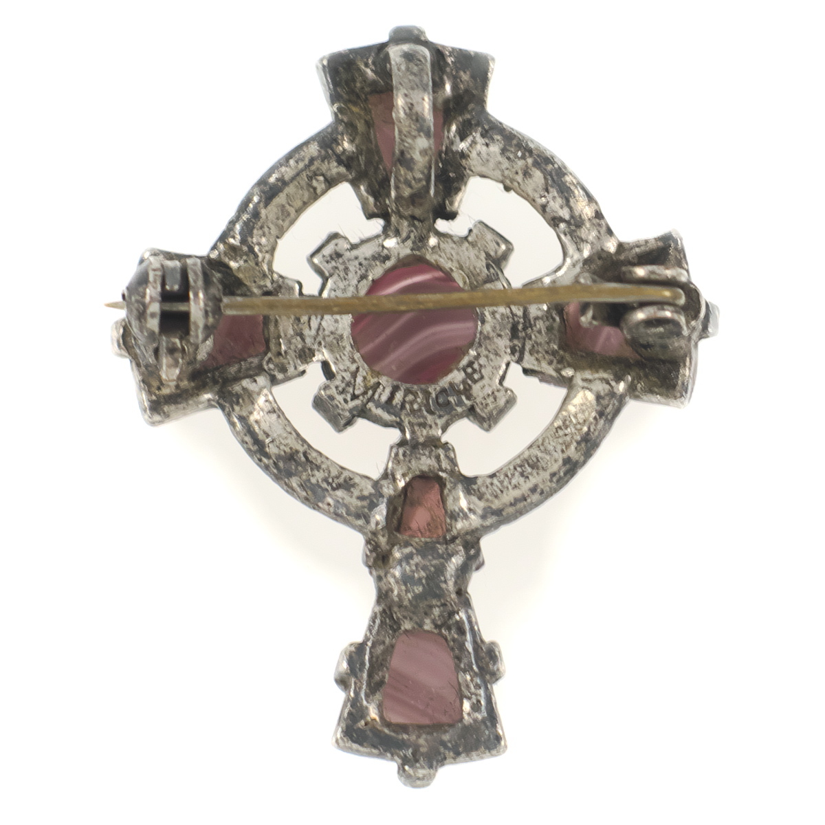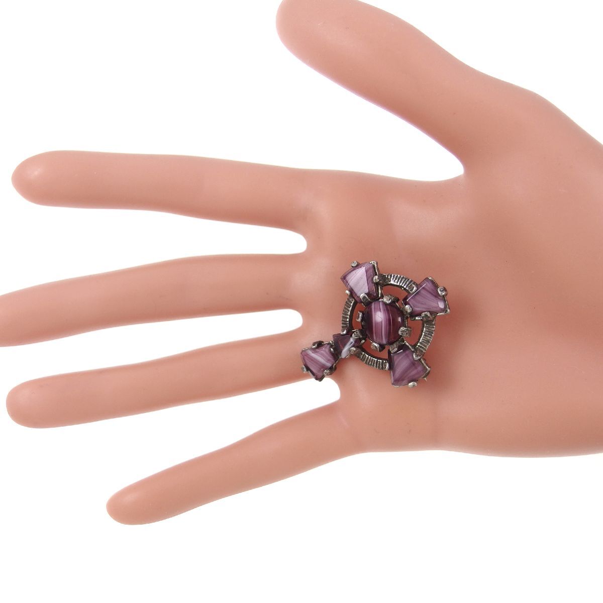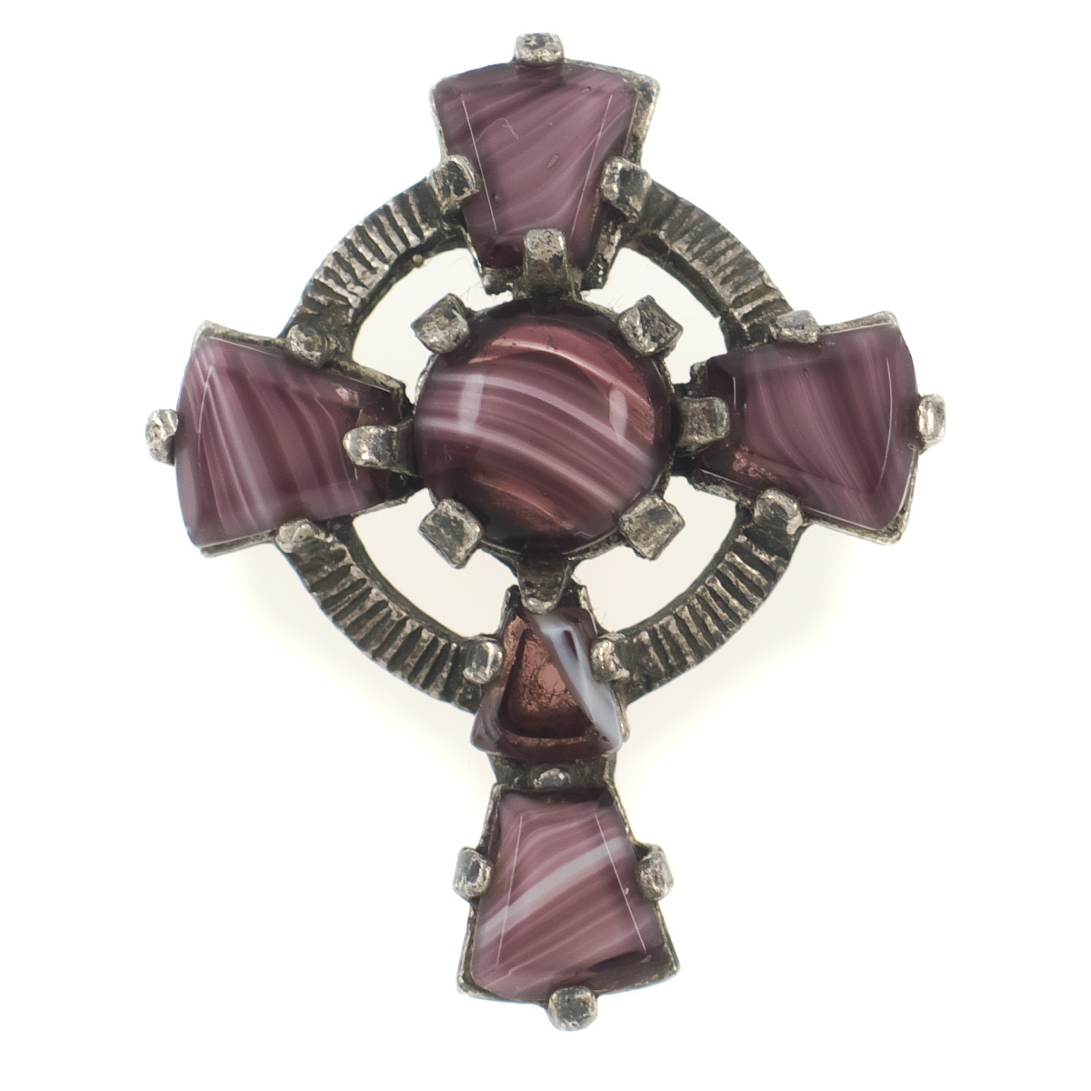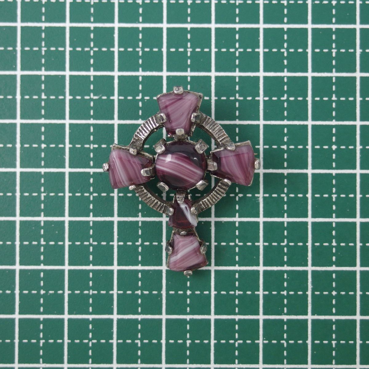 UK3886◆【MIRACLE】◆ ケルト十字 クロスモチーフ パープル系マーブルストーン 色石 ◆ ミラクル 英国 イギリス ◆ ヴィンテージブローチ