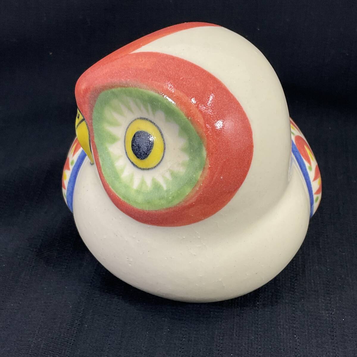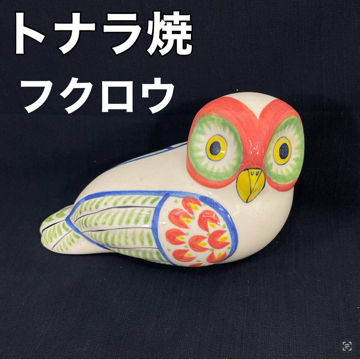 パロマロール社 トナラ焼き フクロウ 置物 絵付け ふくろう 全長約20cm 不苦労 インテリア 民芸雑貨 縁起物 (C1986)