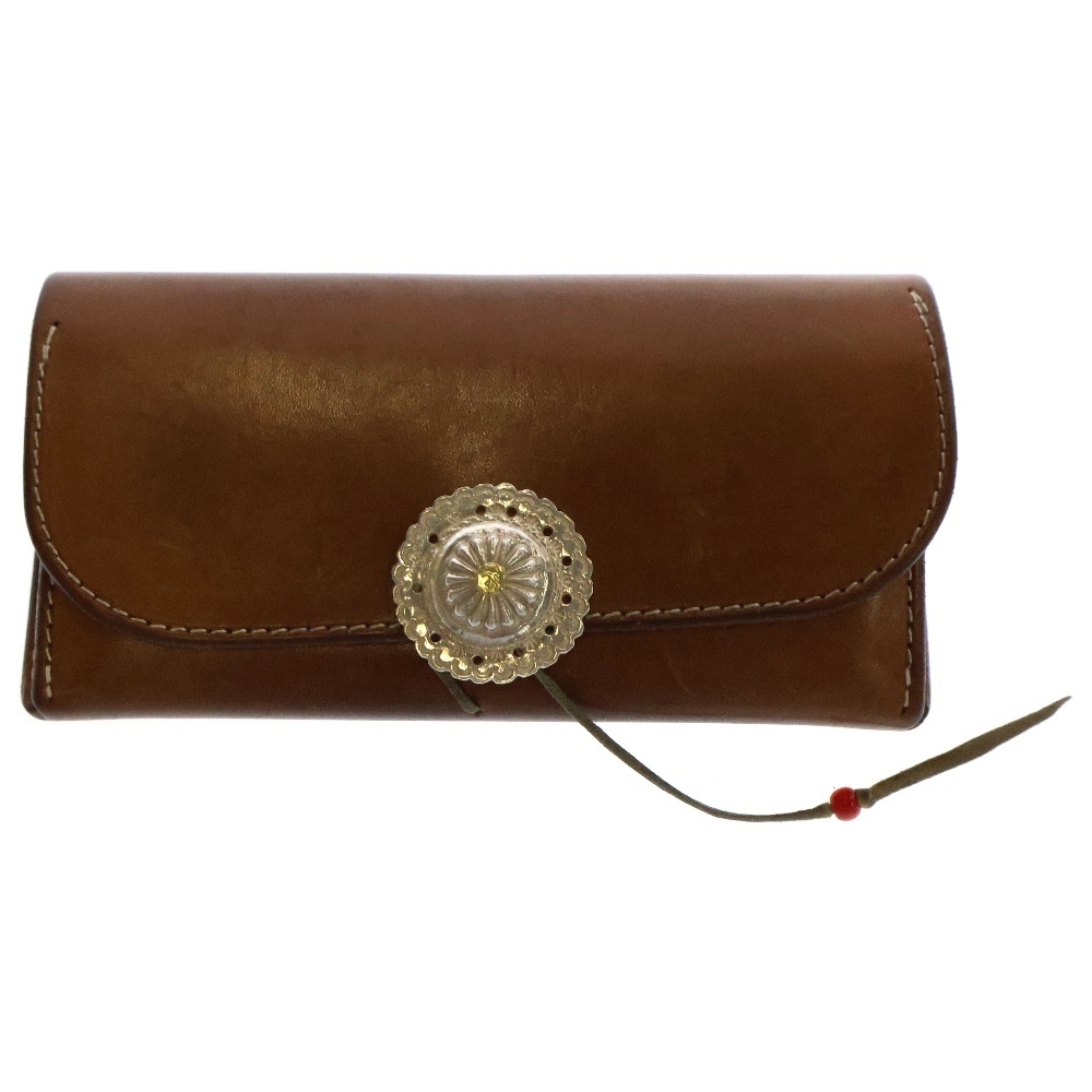 goro's ゴローズ K18フラワーコンチョ付き 2つ折りレザー長財布 こげ茶