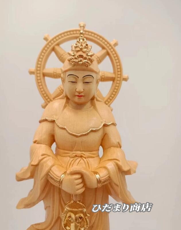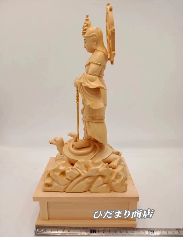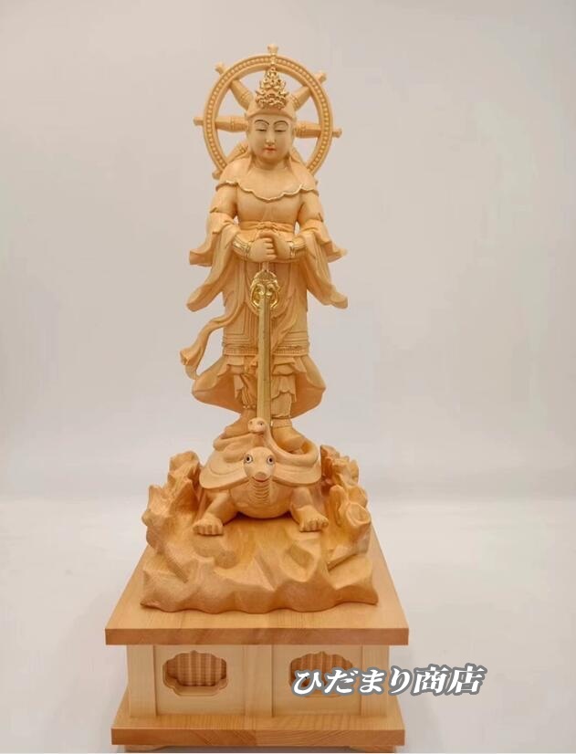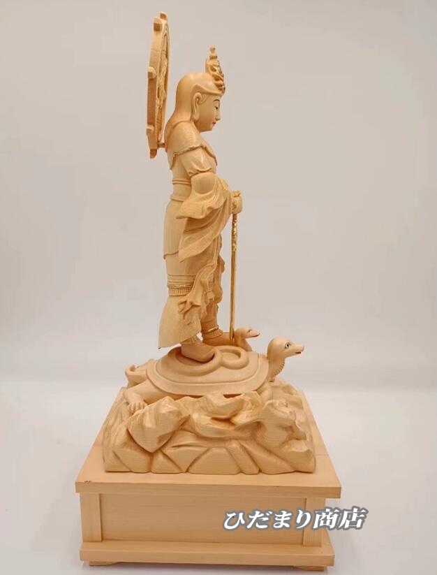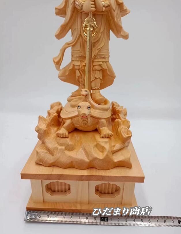 大人気上質仏像 妙見菩薩 立像 乗亀像 北辰妙見菩薩木彫仏像 高級木彫り総高38cm(原木)