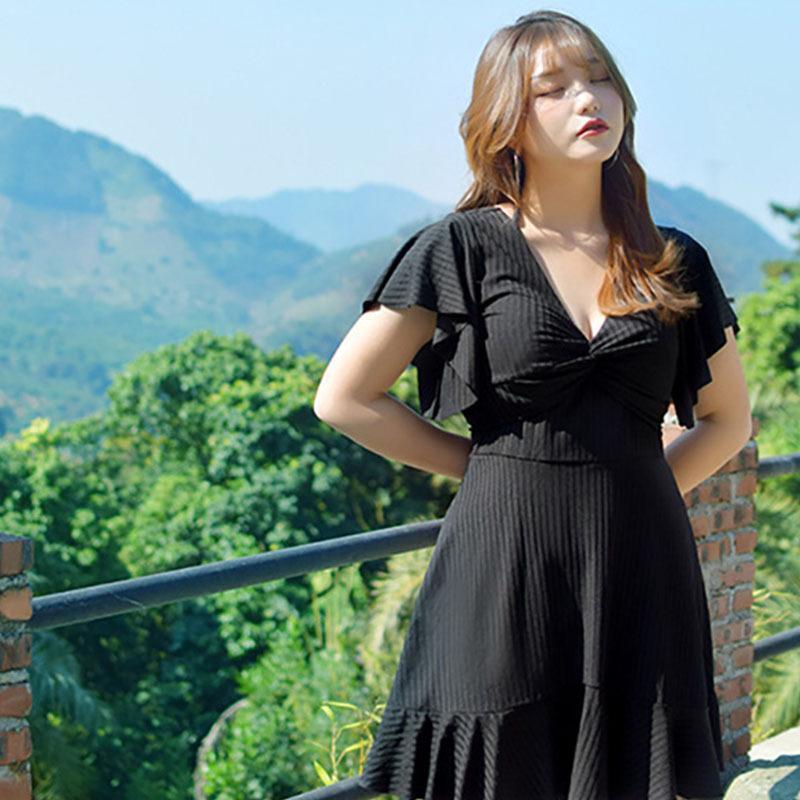 温泉 体型カバー レディース 水着 大きいサイズ ぽっちゃり ぽっちゃり ママ ワンピース水着 ブラック XL